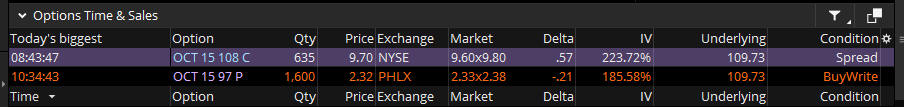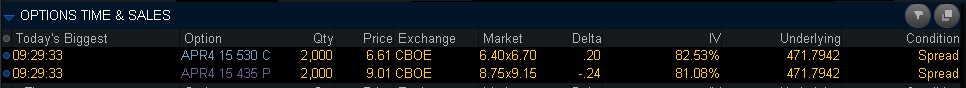 Here was the big option action Friday with a huge 1,774 contract PUT buy at the ask.