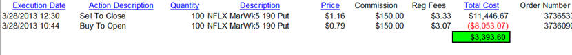 ============================================================================================== 4/3/13 - Cha-CHING!!! Another Lotto / Compounder trade success!! NFLX slipped under $175 which was major support and a downgrade also kicked in along with an overall market sell off and WHAMO!