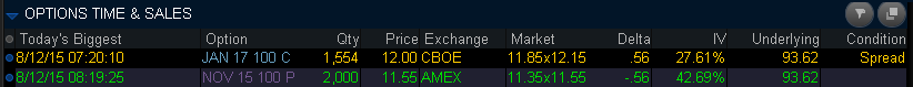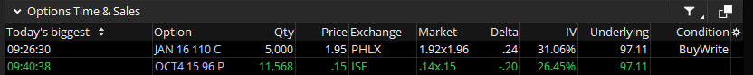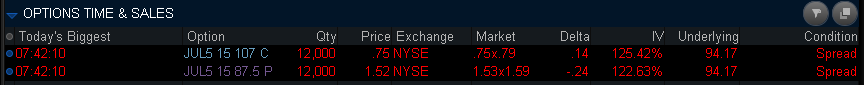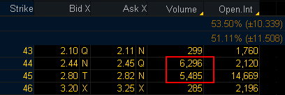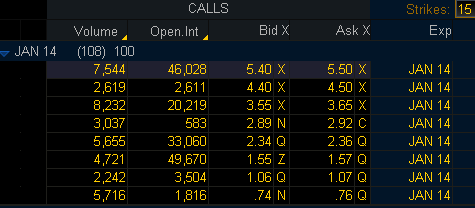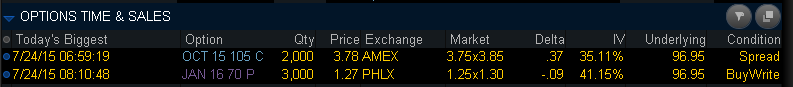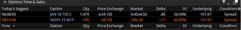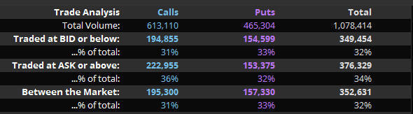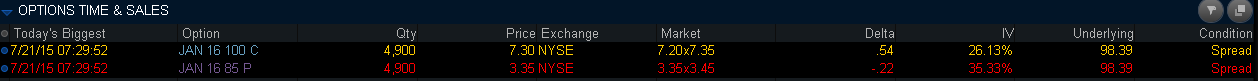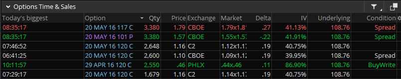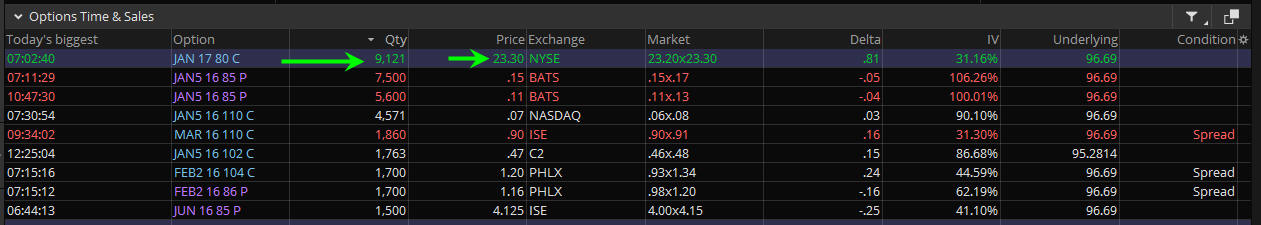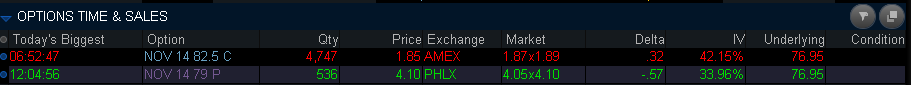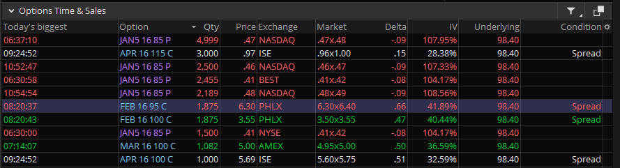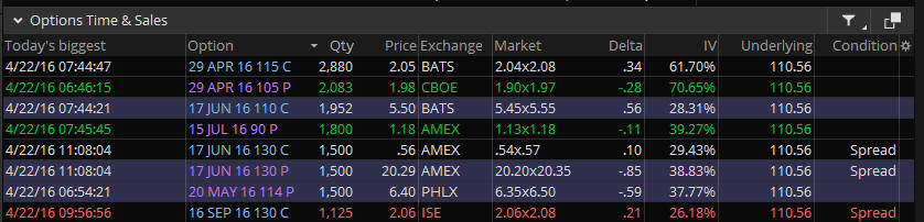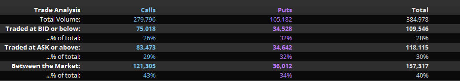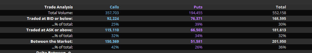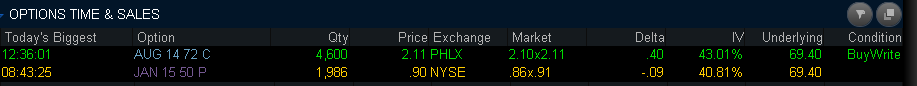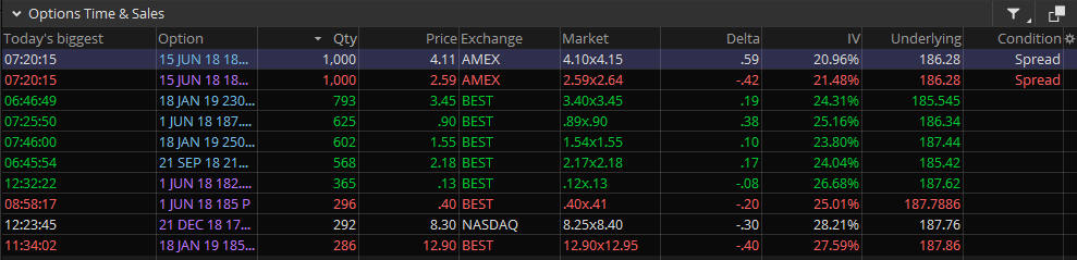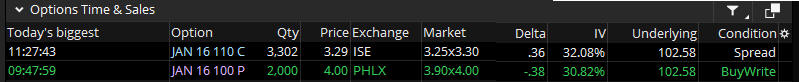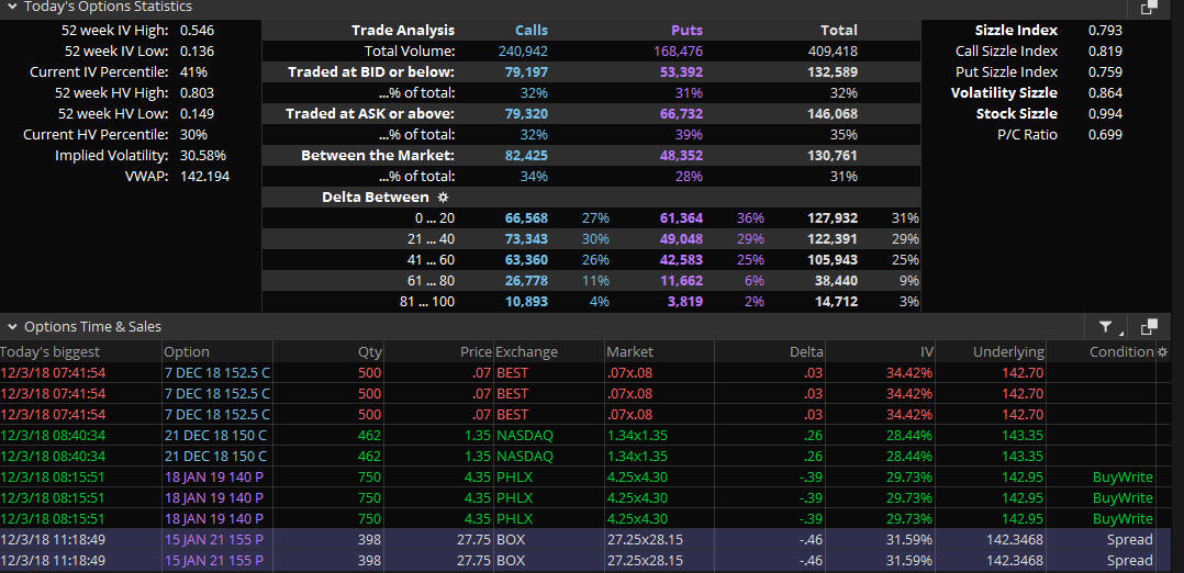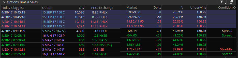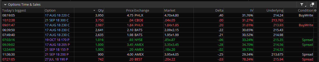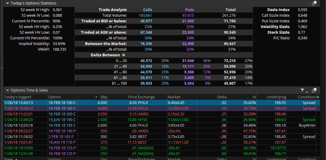 Looks like someone sold some naked calls or covered calls on the Feb1 165 calls (red means traded at the BID)