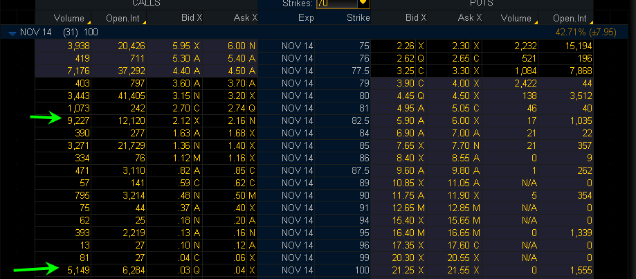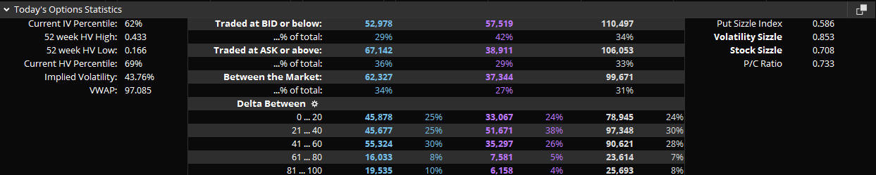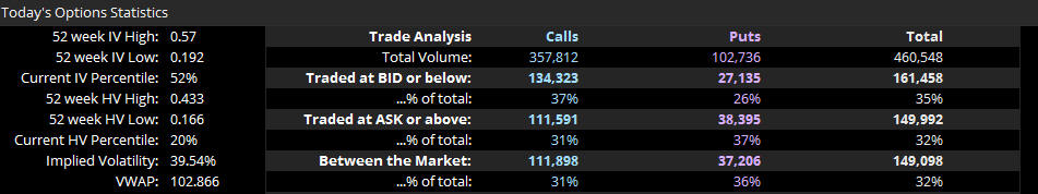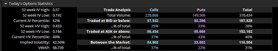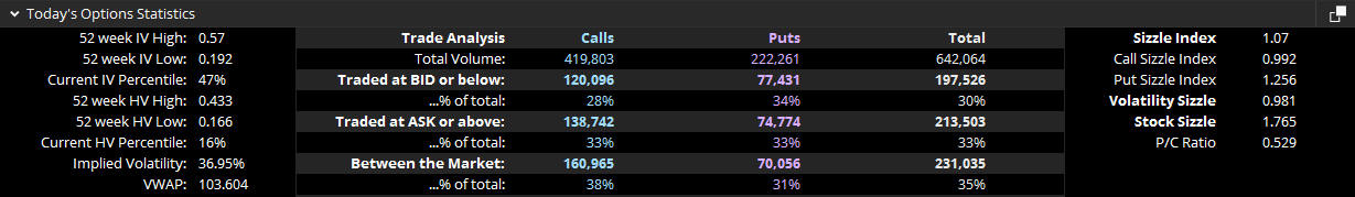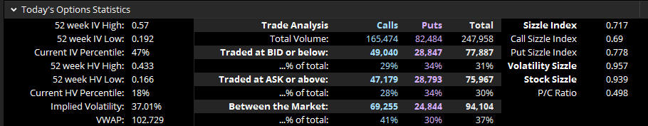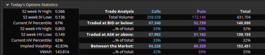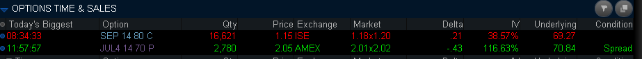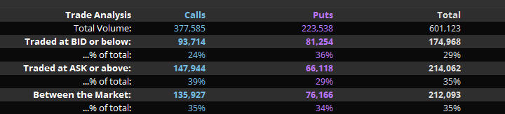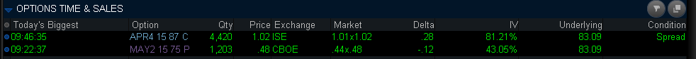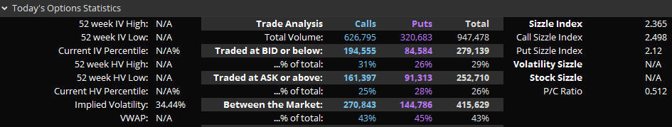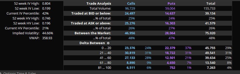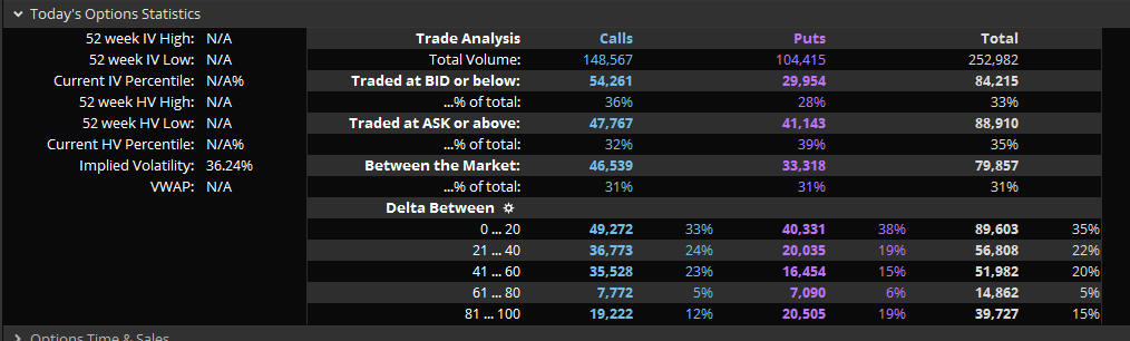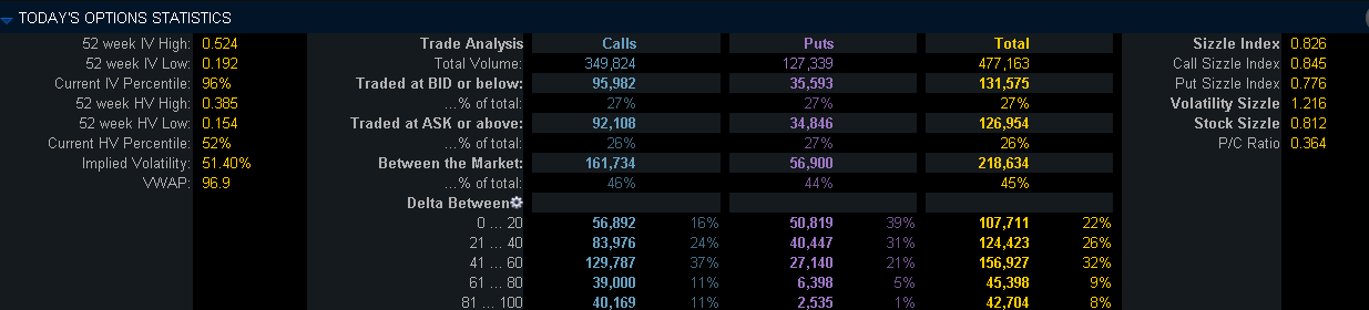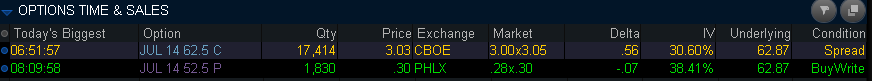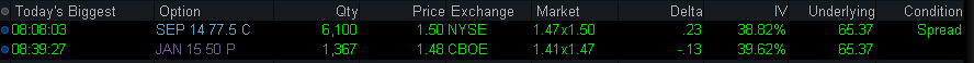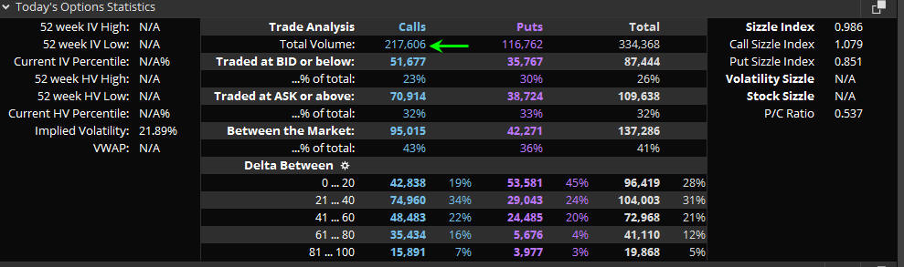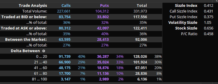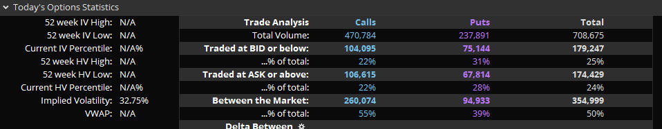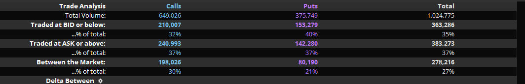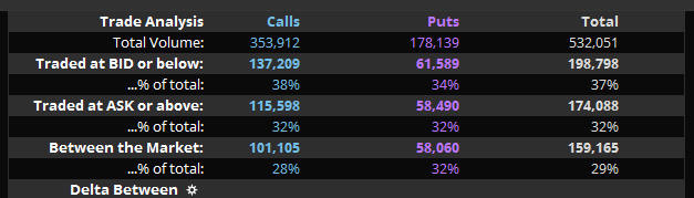 Bias is still LONG and BIG option bets are spreads vs. directional trades which shows some conviction someone is not willing to dump their stock...yet.