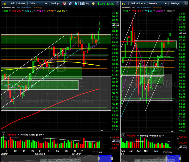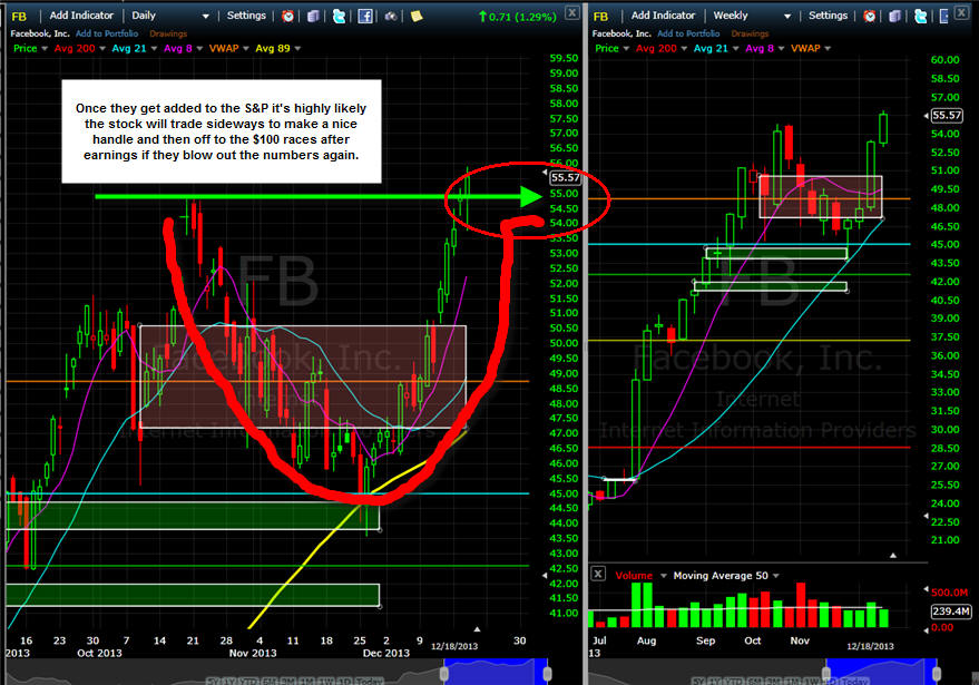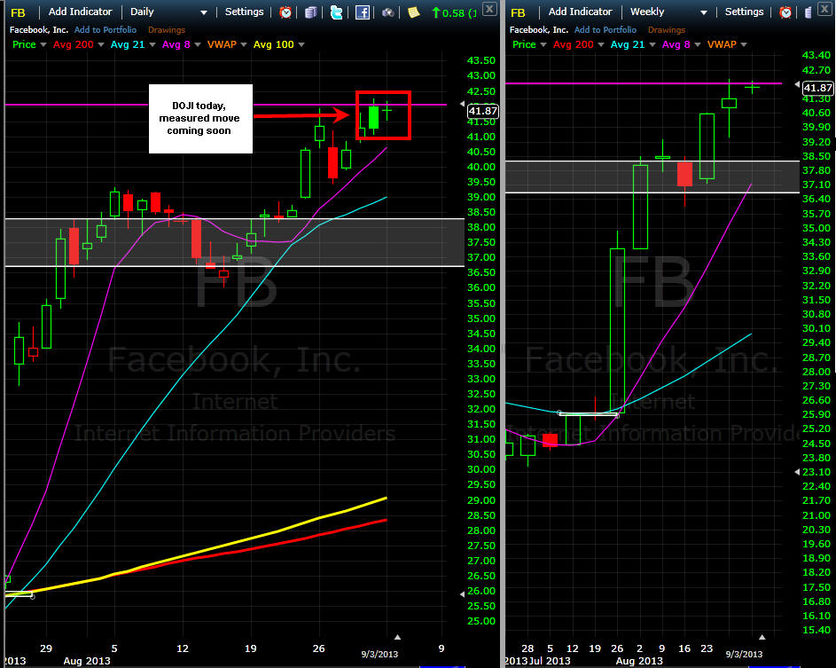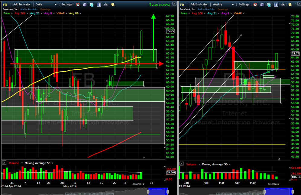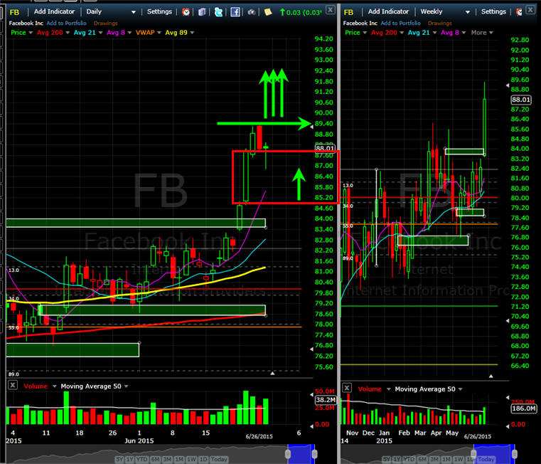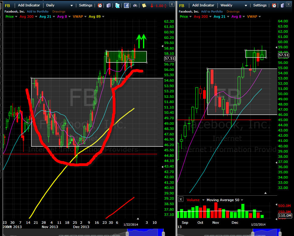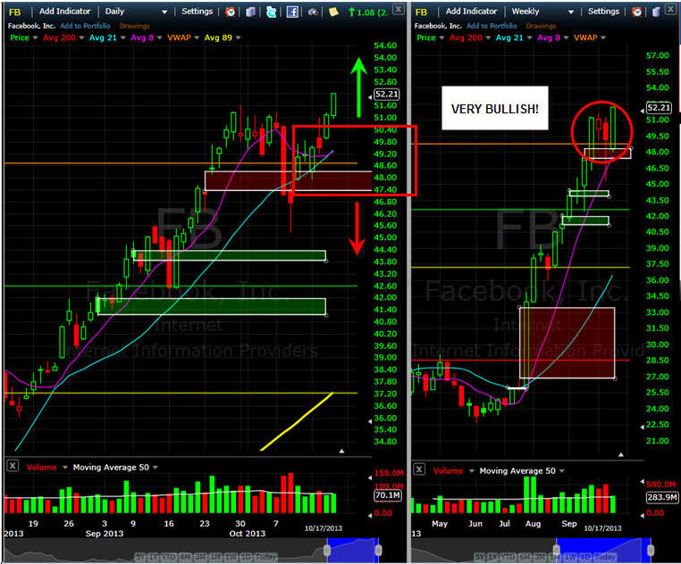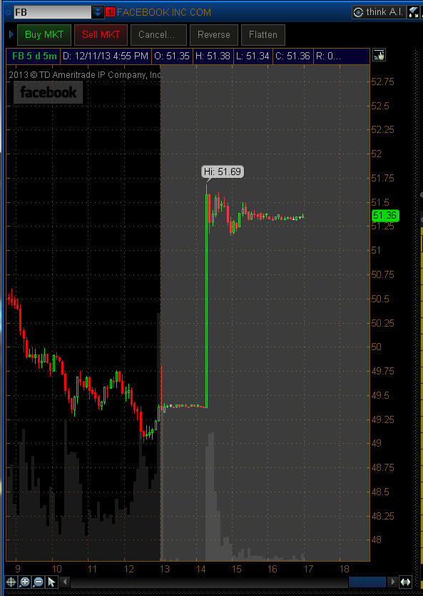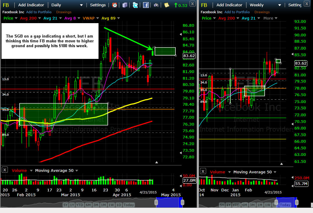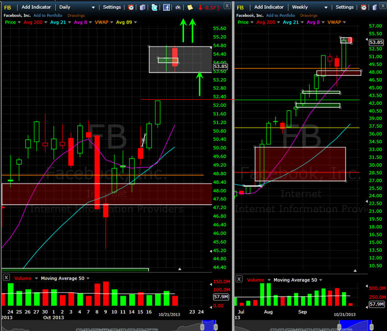 =============================================================================================== 4/10/13 - Upgrades and all the markets going vertical is taking FB up up and away! With upgrades and news that GM is going to do some test advertising on FB mobile is getting this stock into rally mode. If FB gets over the 89MA I am going to buy some May calls and speculate on some weekly calls tomorrow.