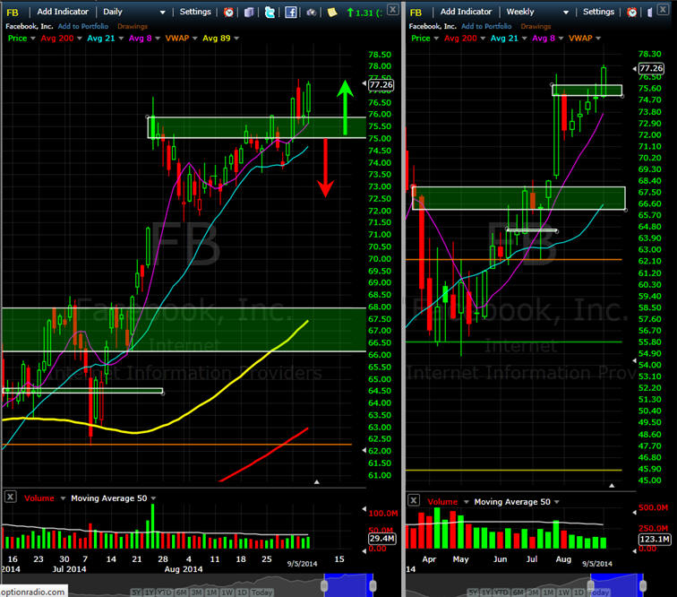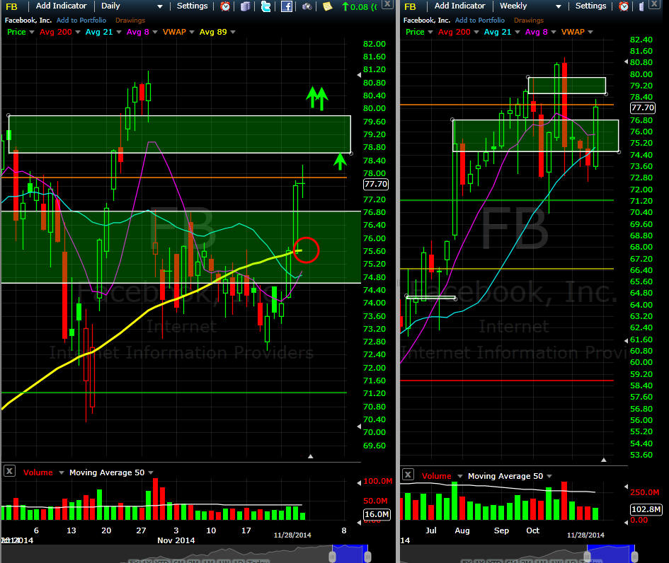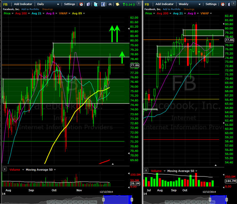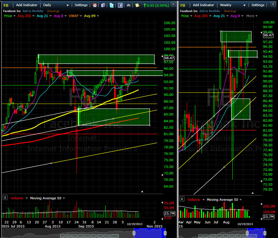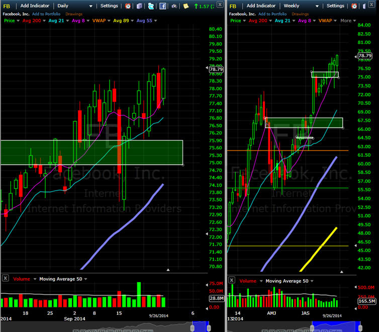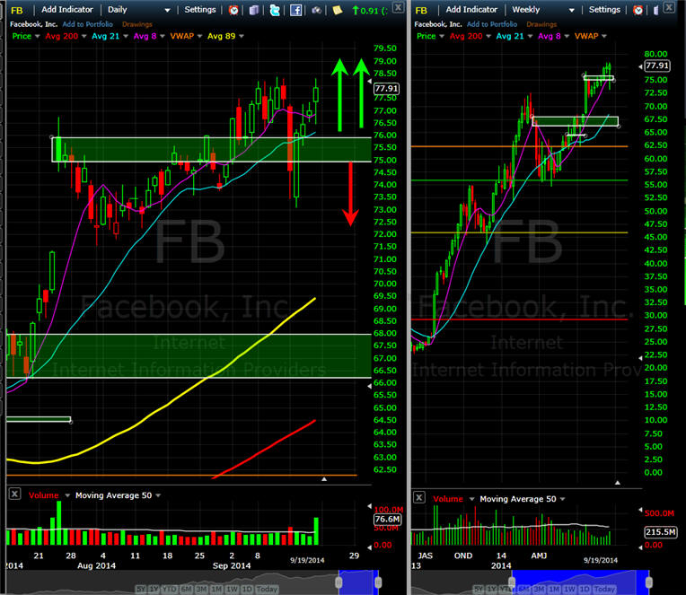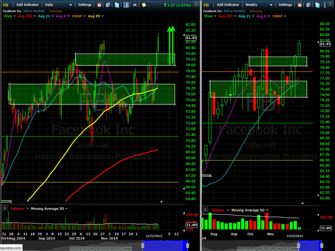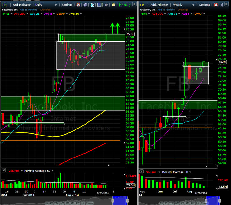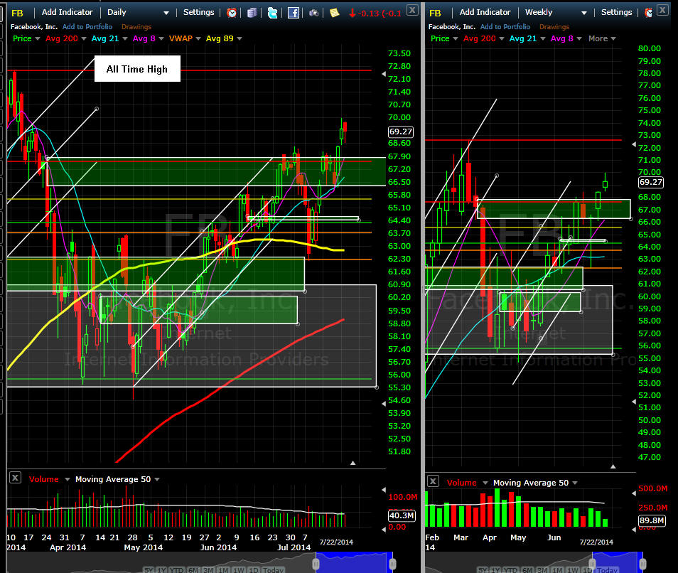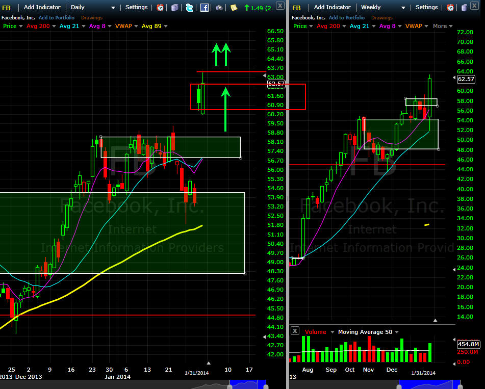 =============================================================================================== 4/10/13 - Upgrades and all the markets going vertical is taking FB up up and away! With upgrades and news that GM is going to do some test advertising on FB mobile is getting this stock into rally mode. If FB gets over the 89MA I am going to buy some May calls and speculate on some weekly calls tomorrow.