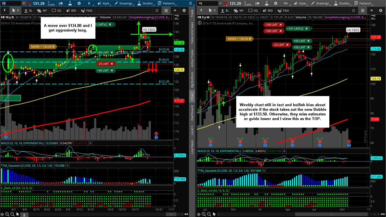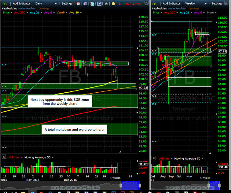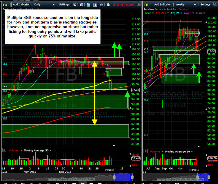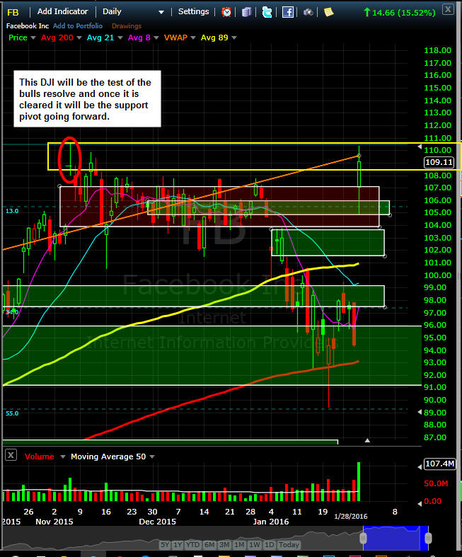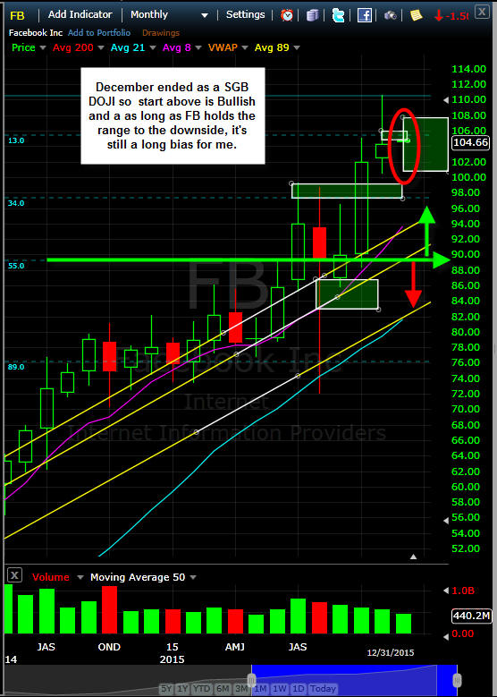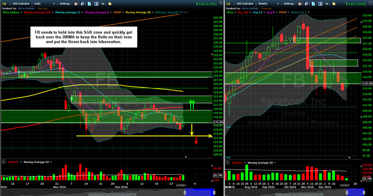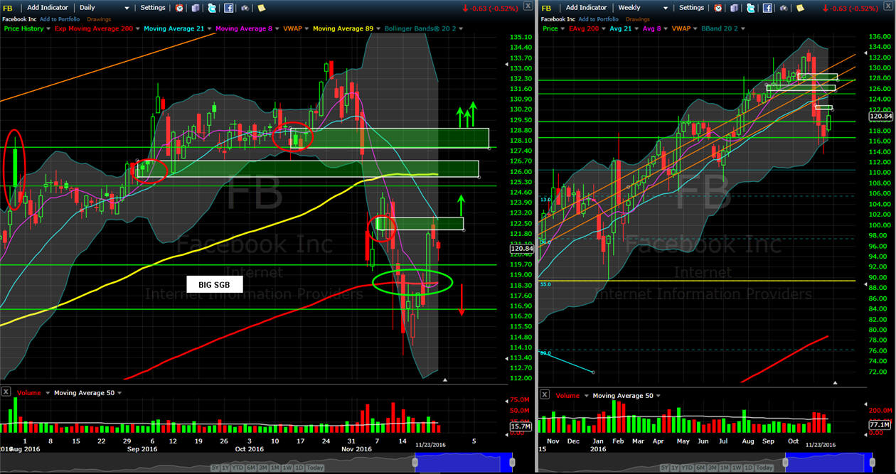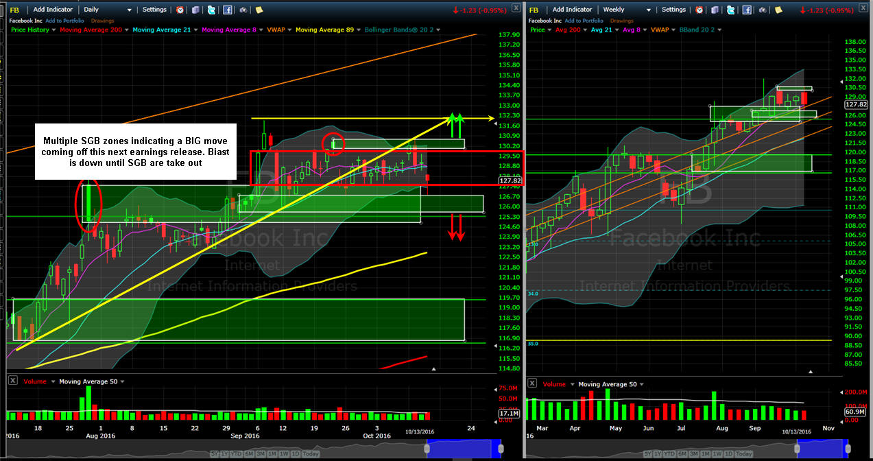 Will this be the "TOP" for the stock? No way to know, but what we can do is lay the orders and eventually we will hook up to a White Whale in the future. So, how do we figure out where the stock is going to land? That my trading friends is always a loaded question with more opinion-needles than a haystack can handle. What I can tell you, is the best haystacks are where the SGB zones show up; and that is exactly where FB stopped on Friday; so I know there is where the action or battlegrounds will be for my price/strike targets.