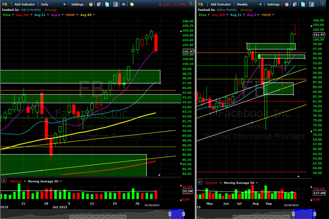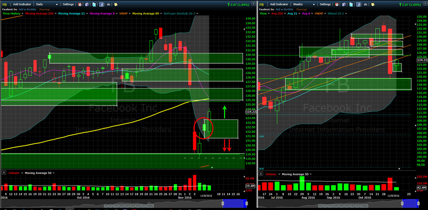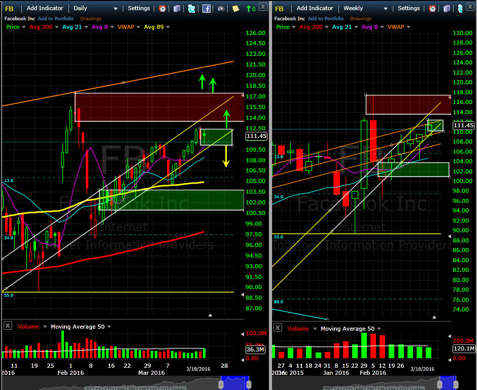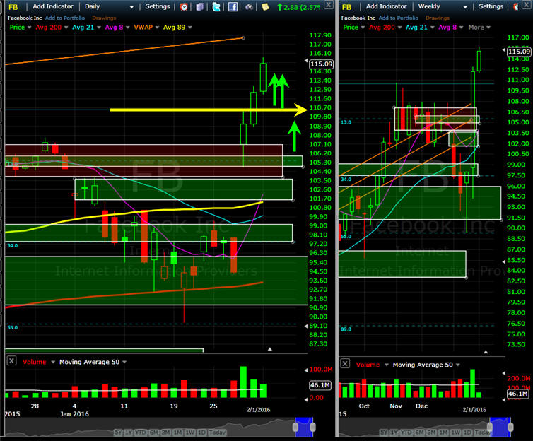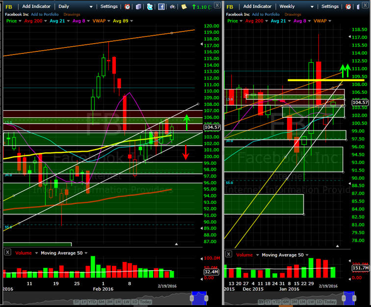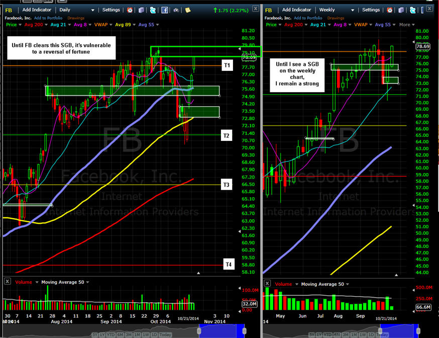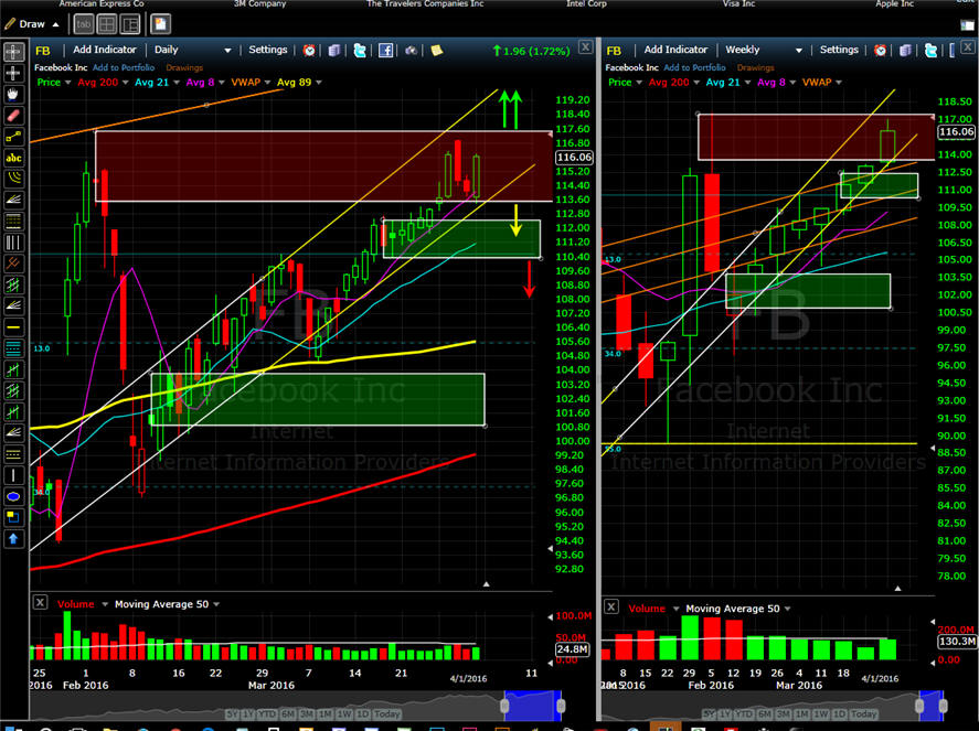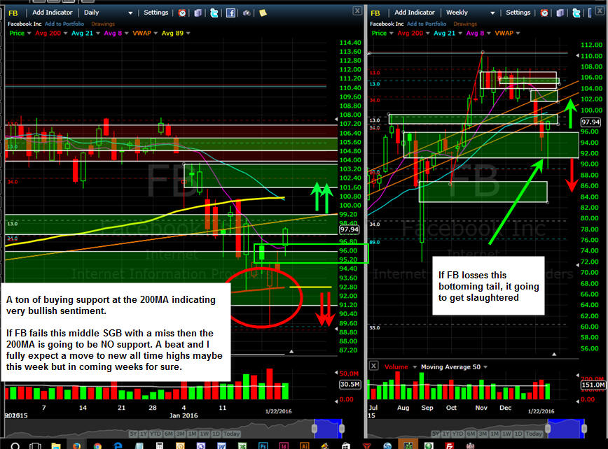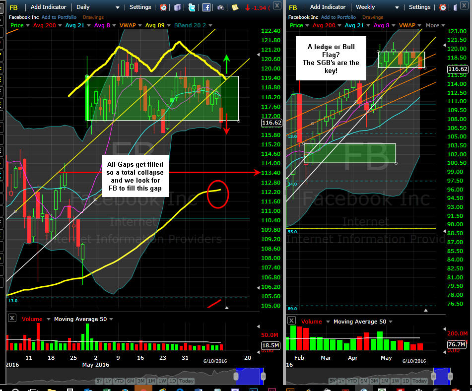 Will this be the "TOP" for the stock? No way to know, but what we can do is lay the orders and eventually we will hook up to a White Whale in the future. So, how do we figure out where the stock is going to land? That my trading friends is always a loaded question with more opinion-needles than a haystack can handle. What I can tell you, is the best haystacks are where the SGB zones show up; and that is exactly where FB stopped on Friday; so I know there is where the action or battlegrounds will be for my price/strike targets.
