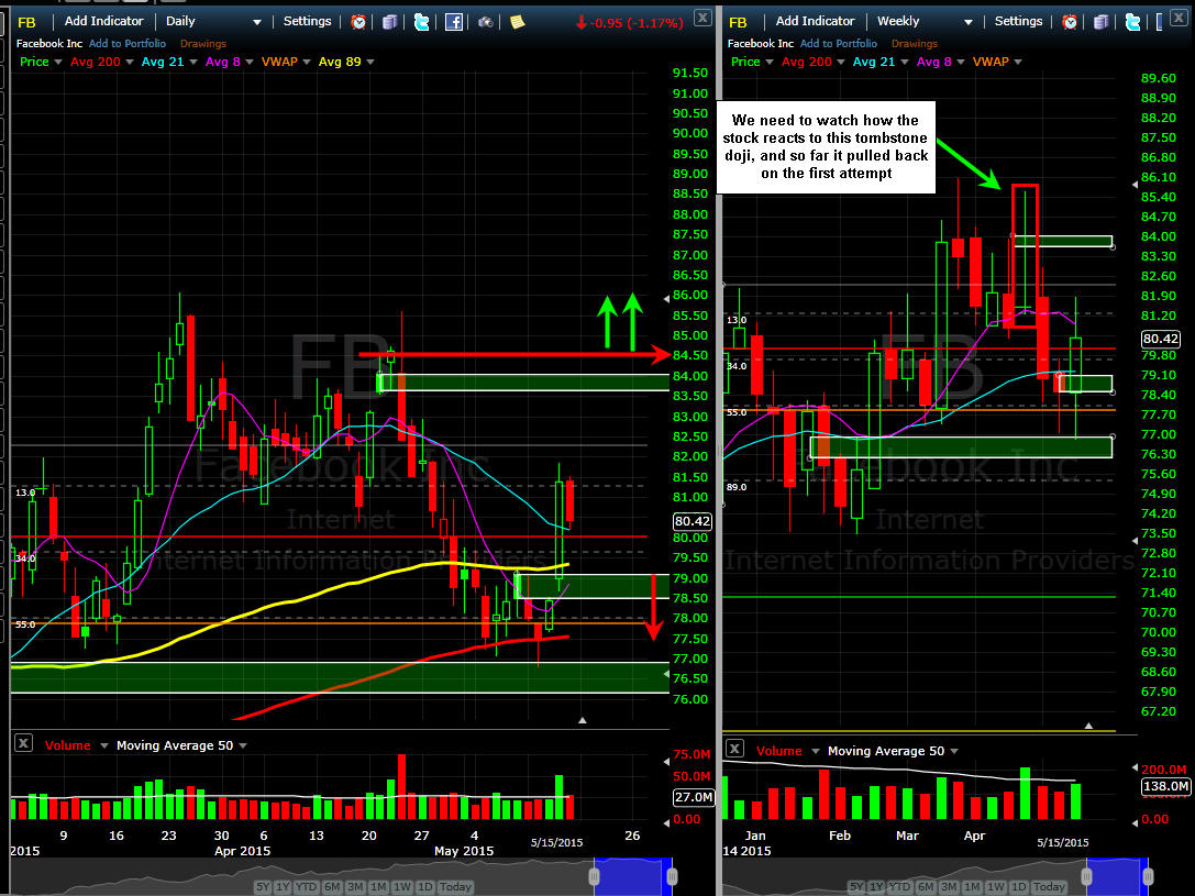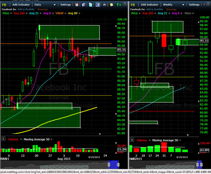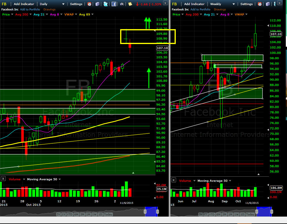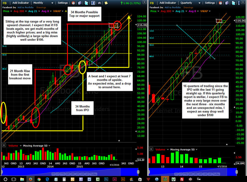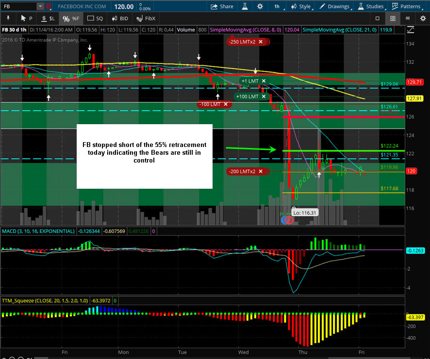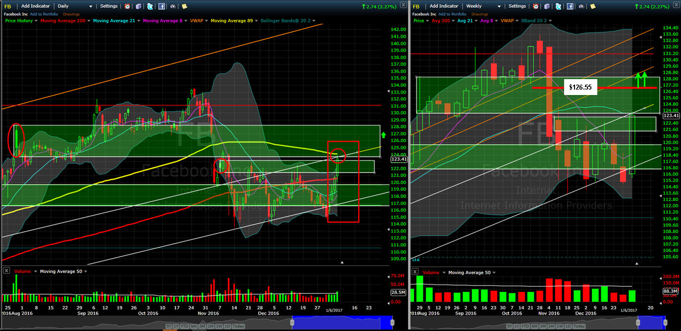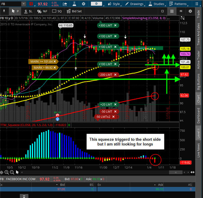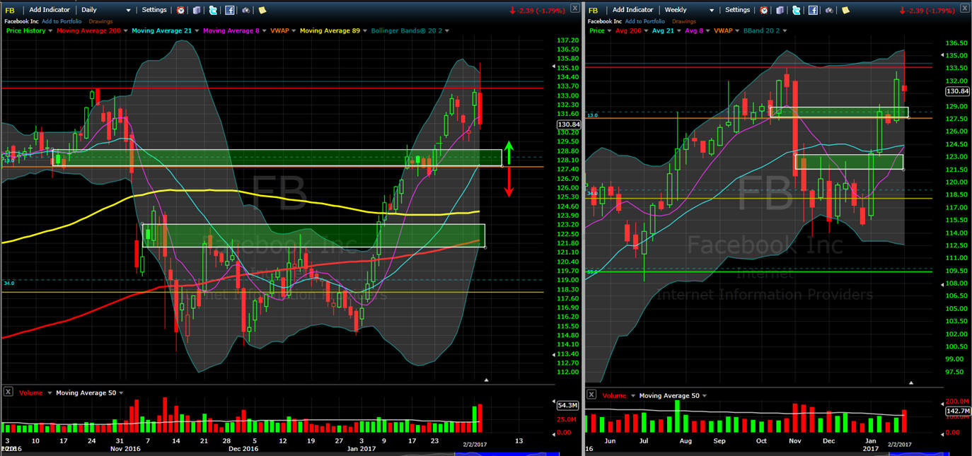 Will this be the "TOP" for the stock? No way to know, but what we can do is lay the orders and eventually we will hook up to a White Whale in the future. So, how do we figure out where the stock is going to land? That my trading friends is always a loaded question with more opinion-needles than a haystack can handle. What I can tell you, is the best haystacks are where the SGB zones show up; and that is exactly where FB stopped on Friday; so I know there is where the action or battlegrounds will be for my price/strike targets.
