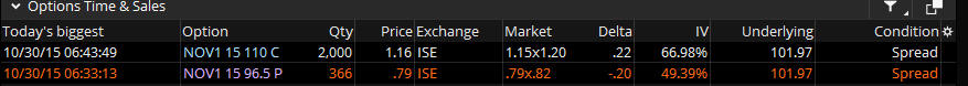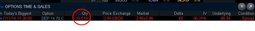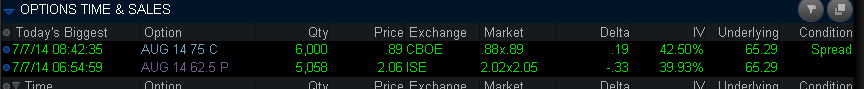 Large block trades in options are relatively quiet probably because tomorrow it a triple witch expiration cycle so I would keep an eye on this next week.