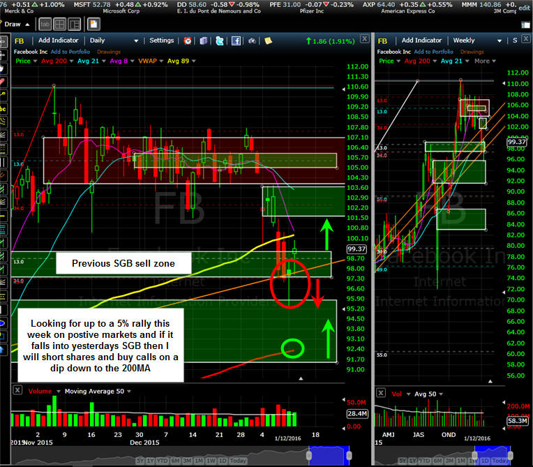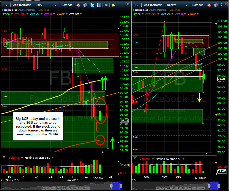 I am always checking the daily charts for SGB's to show up; and will trade around them when they do appear. I will also keep laying those weekly Lotto Trade orders and selling some credit spreads in the direction of the trend; and if the shutdown news hits, I expect FB to slip lower towards the SGB zone down at $158. On the other hand, if the shutdown is avoided, then markets are poised to make a move higher into next week, and of course, I fully expect FB will rise with the tides and trade back towards that earnings SGB zone.