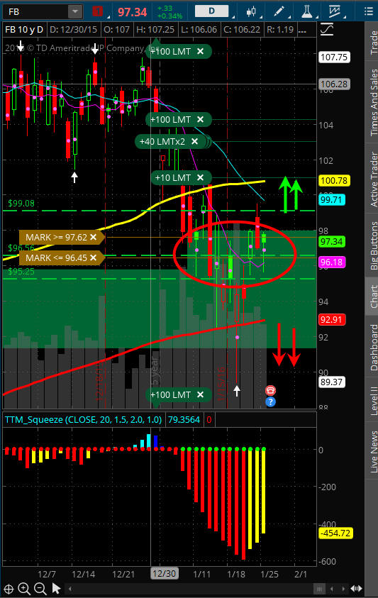 1/28/19 - A down day for the markets but FB held its ground all things considered. No BIG direction bets placed today and CALLS is still the slight bias. The stock remains above the triple SGB zone, so a surprise should propel it higher than $155 and a disappointment and / or negative call etc. and we may just get a very big slam down. No fills on last weeks trade ideas so I have updated with new ones for you to consider.