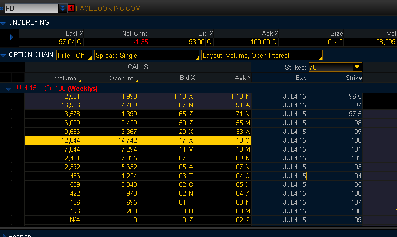 The bias is probably down in most minds, but Cramer says FB is a BUY BUY BUY this week, so Lotto Calls are on the menu now that put IV is pumped up; and then we see how the stock moves around as earnings approach we will set our hooks and hope to catch another Moby Dick trade!!