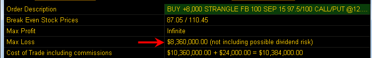 In past quarters, FB has NOT even moved the MMM which is currently +/- 9.29 so you may want to sell some ITM Bull Put Spreads at that MMM to capture some premium to help defray the cost of your wild card Lotto trade speculations.