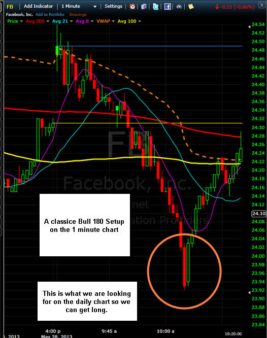 5/28/13 - Gap and CRAPOLA is what happened to FB today. We are looking for the Bull 180 to show up on the Daily chart and below is the patter we want to see. If you get that pattern, it is a Level 3 event!