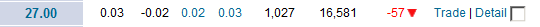 ========================================================================================= 2/13/13- Just when I was getting excited my puts were going to make a profit this week, FB gets a kick in the ass and starts to move higher all day. A popular hedge fund manager announced he dumped AAPL and bought 3 MILLION shares of FB today. Well, that put in a strong bounce off $27.10. At this point, I do not think I am going to get below $27 unless the market melts down, so I bought some MarWk1 29 calls.