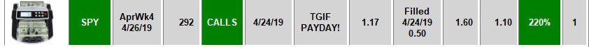 4/18/19 - SUCCESS!  My first "live" TGIF PAYDAY! trade has been completed proving the concept is still in tact and ready to ramp those ProfitsUP!