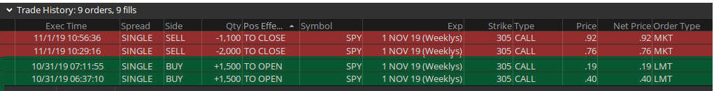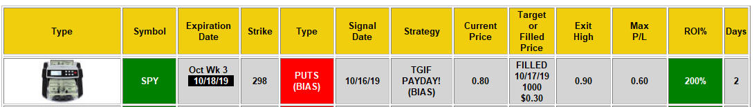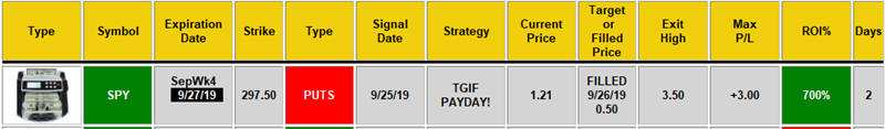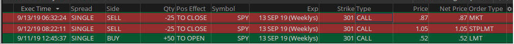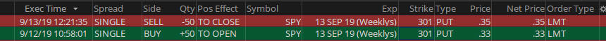 9/15/19 - Straddle TGIF PAYDAY! trades for 9/13/19 expiration.