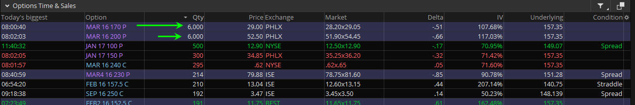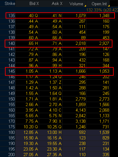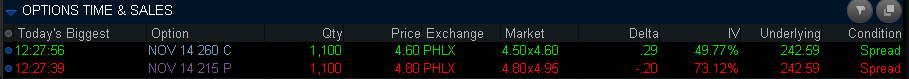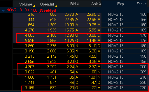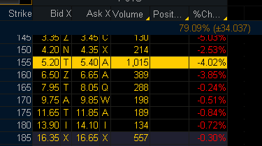 Saw some HEAVY volume on the Nov 13 155 puts today—that was me...just kidding...but I am going to buy some tomorrow.