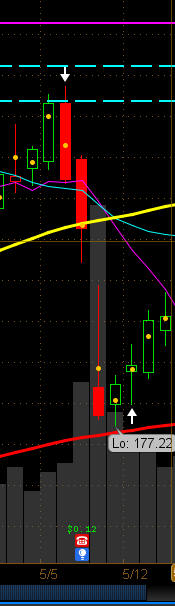 Here is a chart of the 175 Puts. It's amazing that I was filled at the open well below the ask but that is what happens when you are a liquidity provider and somebody is market ordered stopped out. The computer just hunts for the first available buyer and matches you up.