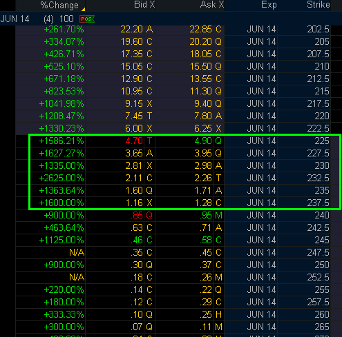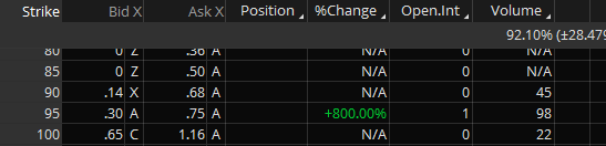 When calculating your anticipated move, go up to 15% OTM for PUTS and 10% OTM for CALLS and if the strikes are in the ZONE and less than $0.10 that is where you speculate with wild card LARGE contract loads.