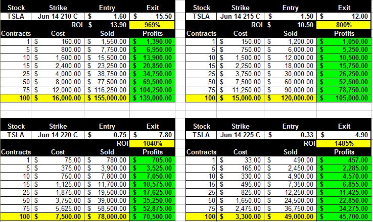 If TSLA is one of your "go to" stocks; and you were doing the Lotto Trade formula; then you will be waking up to HUGE profits like these are looking to be at the moment in my model portfolio!!!