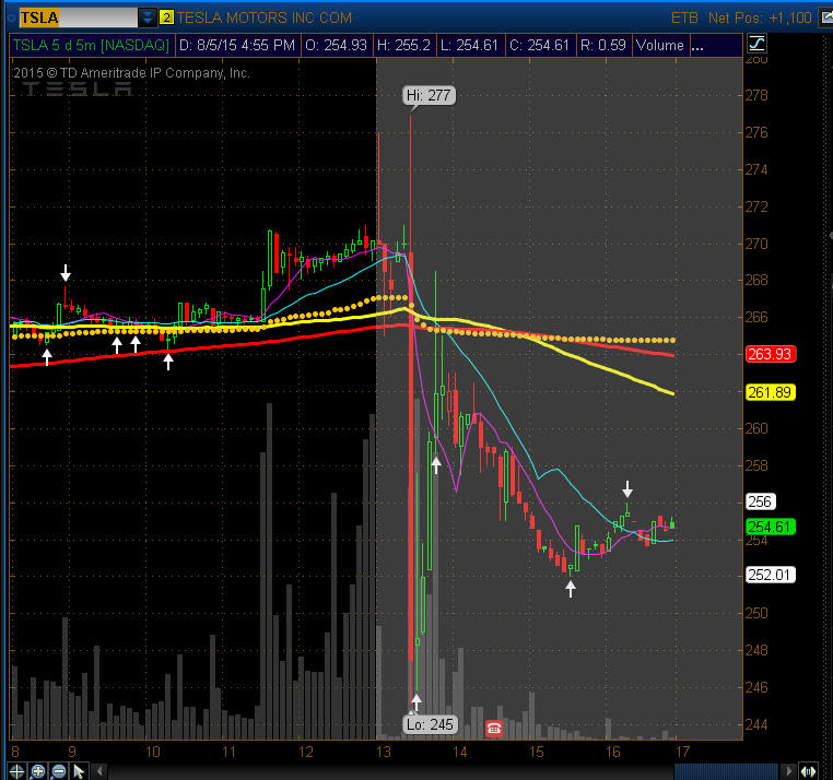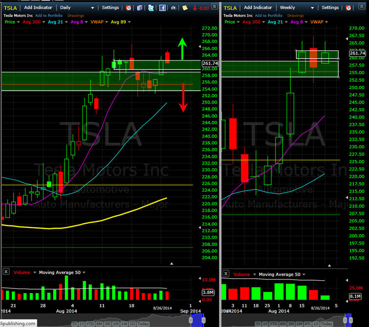 ======================================================================================================================= 8/24/14: A little support Friday but if TSLA slips under $255 then I am going to put on some short positions with a couple OTM lotto calls in play.