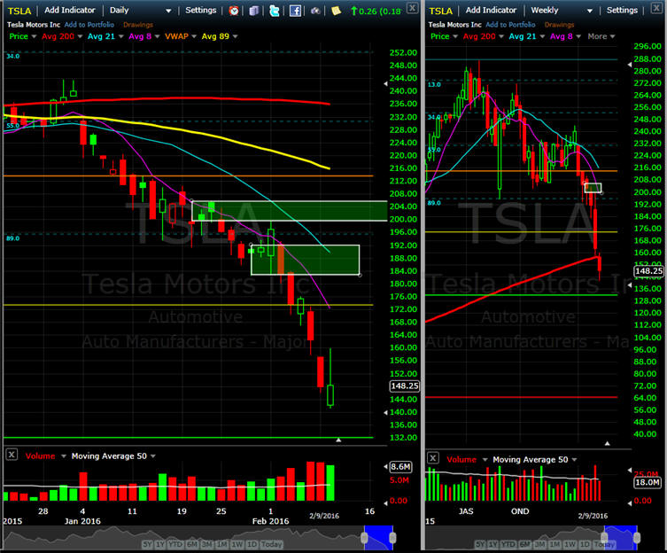 ========================================================================================================== 10/12/14: We have a nice profit on the Lotto Play so far. Now that the stock confirmed the SGB and with that huge gap down on Friday, TSLA is technically damaged goods and very vulnerable to testing the 200 MA on the daily chart.