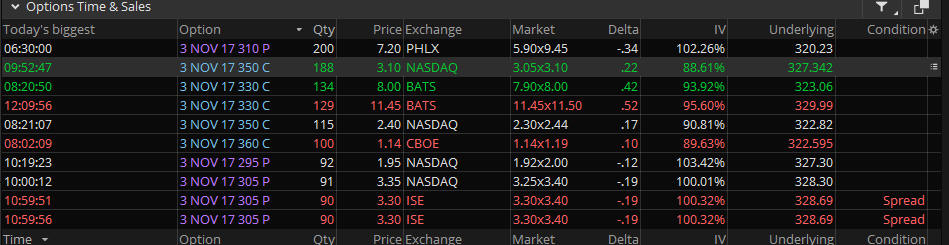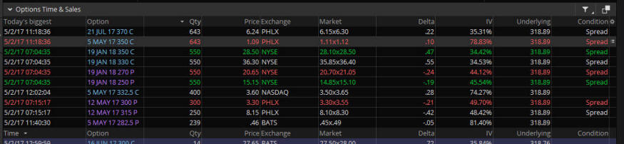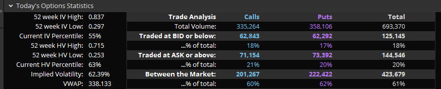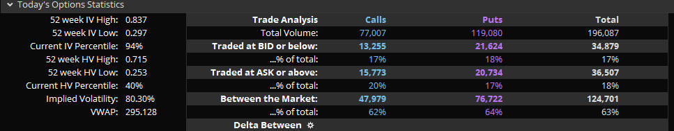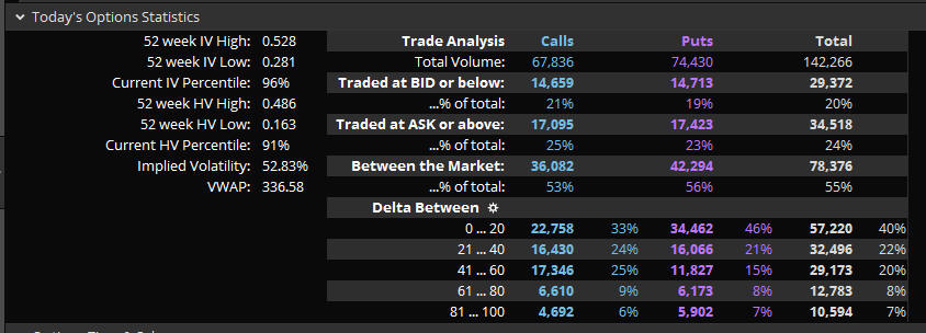 With this news hitting over the weekend and this morning, the options IV will be PUMPED way up at the open, so you have to FISH for better fills on the Call side at the 310/320 strikes and/or buy some wildcard puts/calls 20% OTM with a all-or-nothing mentality.
