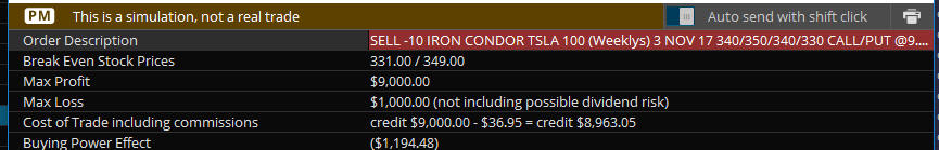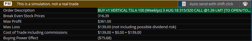 Then you make $361.00 for every $139.00 invested if TSLA closes above $320 on Friday.