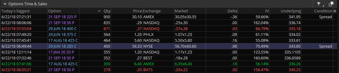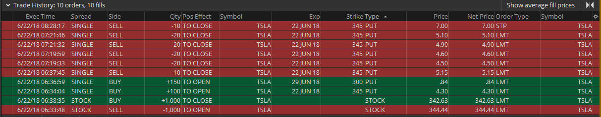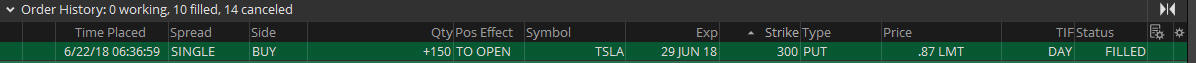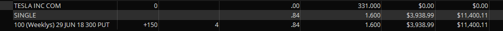 I also loaded up on some 6/25/18 $300 Puts, and have some good profits building so far, so I will see if the stock continues to get whacked this week and I can cash in!