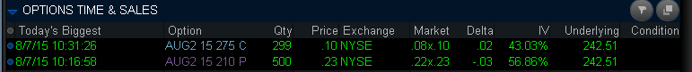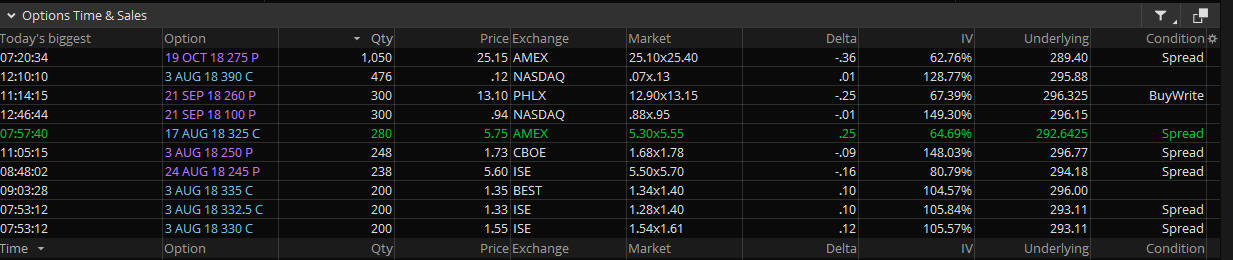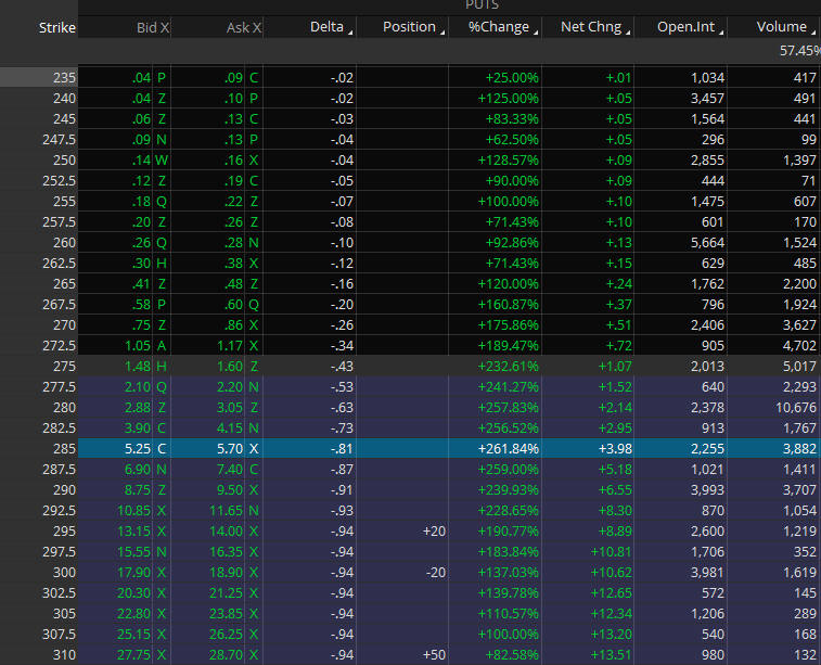 What I plan to do is sell some ATM Bull Put spreads and buy some $295 CALLS then I will fish the 225 Puts at $0.25.