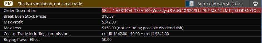 You can make a maximum of $342.00 for every $158 you risk if TSLA closes above $320.00 on Friday.