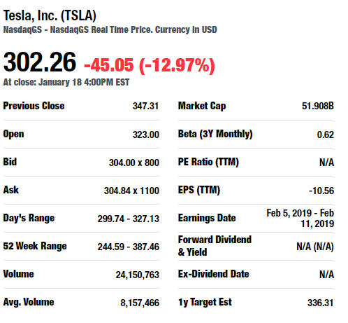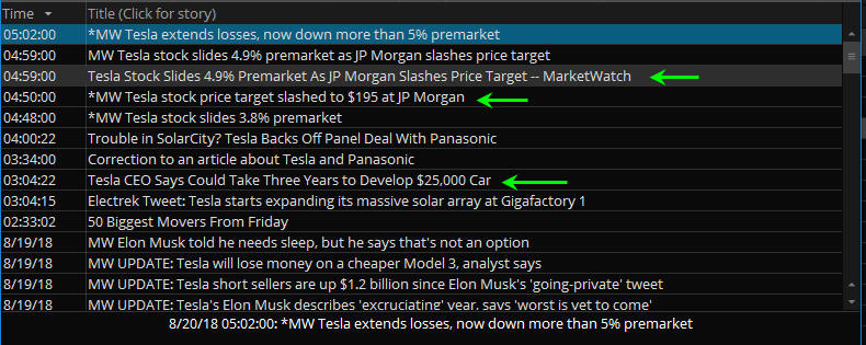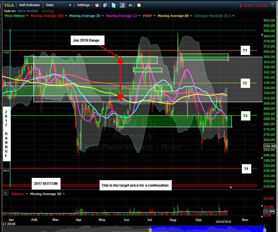 ============================================================================================================================= 8/20/18 - The Bears are having their day with TSLA as the stock got whacked on Friday a whopping -8% and now in pre-market it is getting smacked down even more as the negative news, downgrades and CEO comments continue to create an environment of deluge.