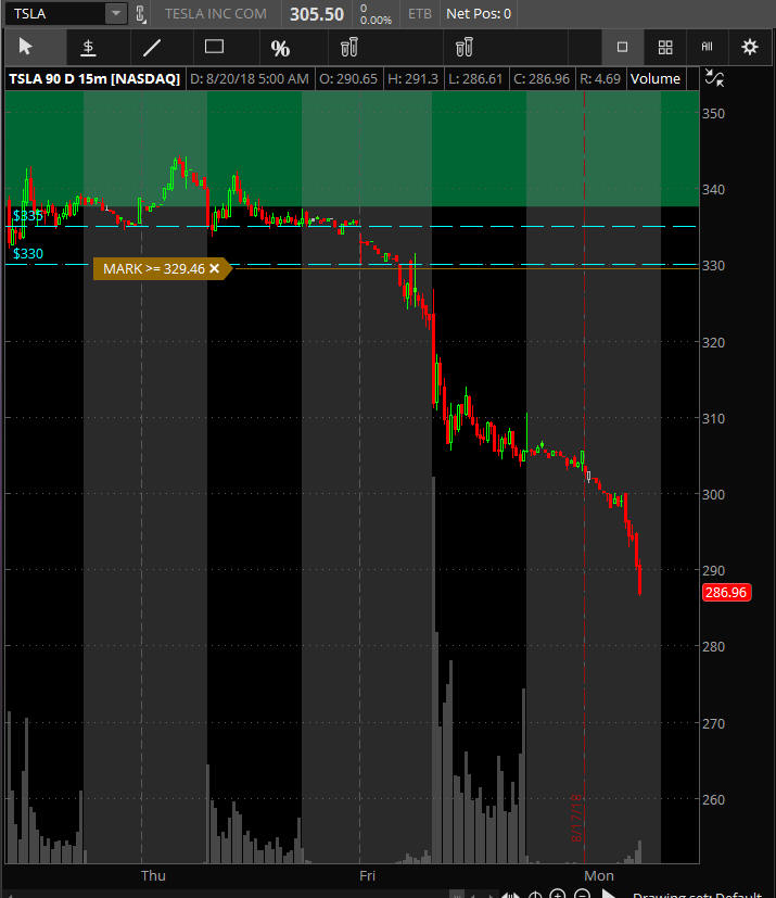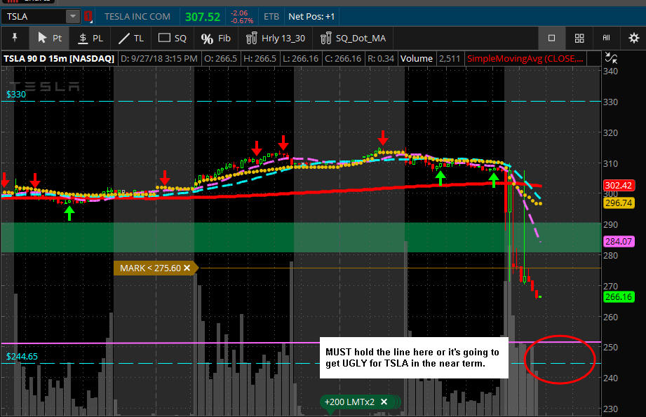 9/27/18 - TSLA is getting CRUSHED in after hours trading from the news that the SEC is suing CEO Elon Musk for fraud...maybe they drop the next hammer and pursue criminal charges too...wow.