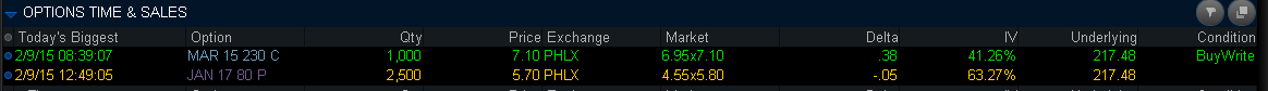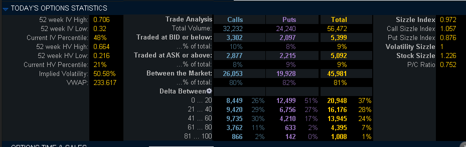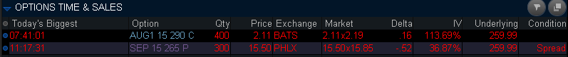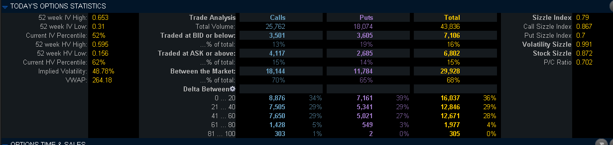 With this current news, the stock is only down (-1.81%) in pre-market, so it is hardly effecting the long investors resolve at this time. Now if there is a pile-on situation, then we could see a nice 10% or higher drop this week, so I am going to see how the stock opens today and then start selling some ITM Bear Call Spreads and buying some 255 Puts if I can get in under $0.40 cents.