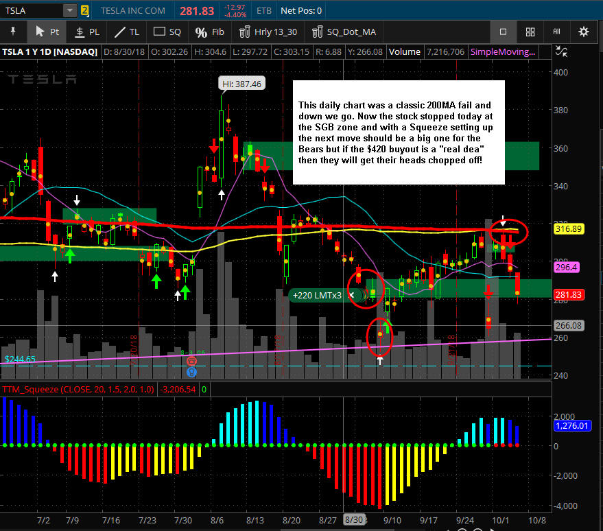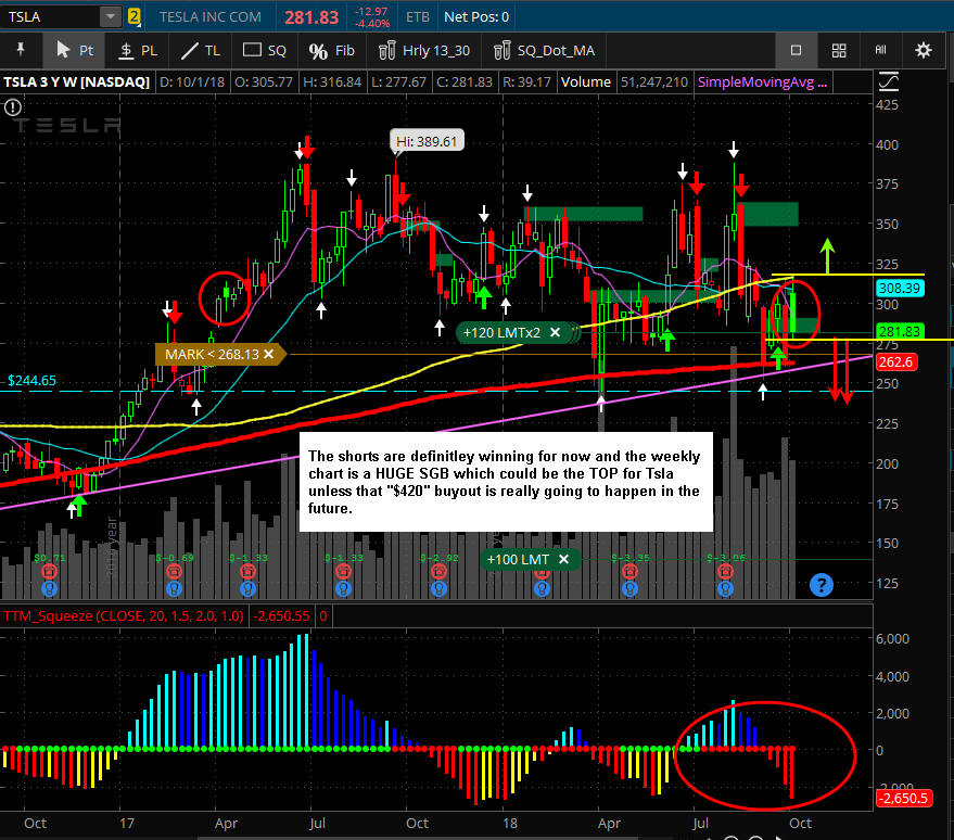 =================================================================================================================== 10/7/18 - The Bears managed to claw TSLA back down to their post-pot breakdown level because Mr. Musk just can't keep his fingers off the twitter keyboard...I think he saw a puddy-SPLAT this time with his stock...roflmao