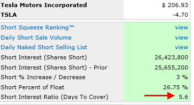 ======================================================================================================================= 3/30/14 - I am expecting a rally this week so I sold some ITM Bull Put Spreads with minimal downside; however, TSLA must move higher into my strikes to make a profit. With TSLA closing into the last SGB zone the resulted in a very large gap move higher last time we have to be cautious here. Friday's close resulted in a SGB Doji and this will be a test of will for the Bulls and salivating opportunity for the Bears—this makes for a volatile movement any day now. I like the Bulls more than the Bears point of view, but that does not mean I am right. In fact, I am usually wrong more than I am ever right, it's just the way we handle things when we are wrong that makes us a professional vs. novice trader. When option trading, you have to be able to make decisions and counter moves to survive the dynamics of unforeseen changes, unexpected news events and the two most important factors a trader must conquer: FEAR and GREED! One of the ways to mitigate all of these factors is limiting risk with spreads vs. directional trading. With TSLA in a heavy selling mode, the shorts have picked up momentum and now stand at 33.92% or 28.6 million shares estimated to take 3.4 days to cover. This is what we look for because any positive news will cause those investors who are short to cover rapidly driving pirce higher in a very quick timeframe. Since we do not have earnings coming out until May, the movement in TSLA might be around 3 - 5% on a market rally. On the downside, I see TSLA not finding major support until $174 - $180 so if we start down this week, I will buy some APR 180 Puts to hedge my Naked Puts, but I am fully willing to take ownership of TSLA at $200.