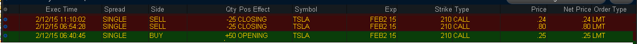 =================================================================================================== 7/28/14: Filled on the Bull Put Spread on a better price than posted! ==================================================================================================== 7/27/14: Successful Bull Put Spread and now time to sell another one as TSLA looks ready to push higher as earnings approach.