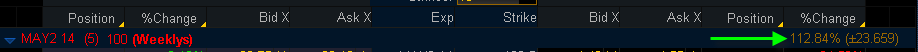 =============================================================================================================== 5/4/14 - This week is a big earnings release for TSLA and we need to be ready to catch some big profits! Current MMM has TSLA at +/- $20.29 and of course the options are priced with a ton of implied volatile. In fact, the IV is currently at 112.83% for this week alone.