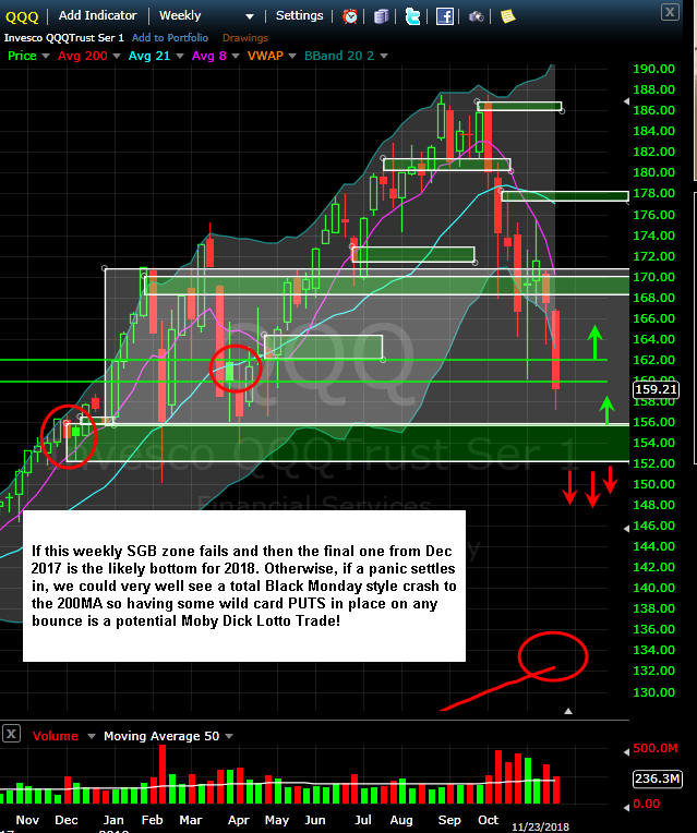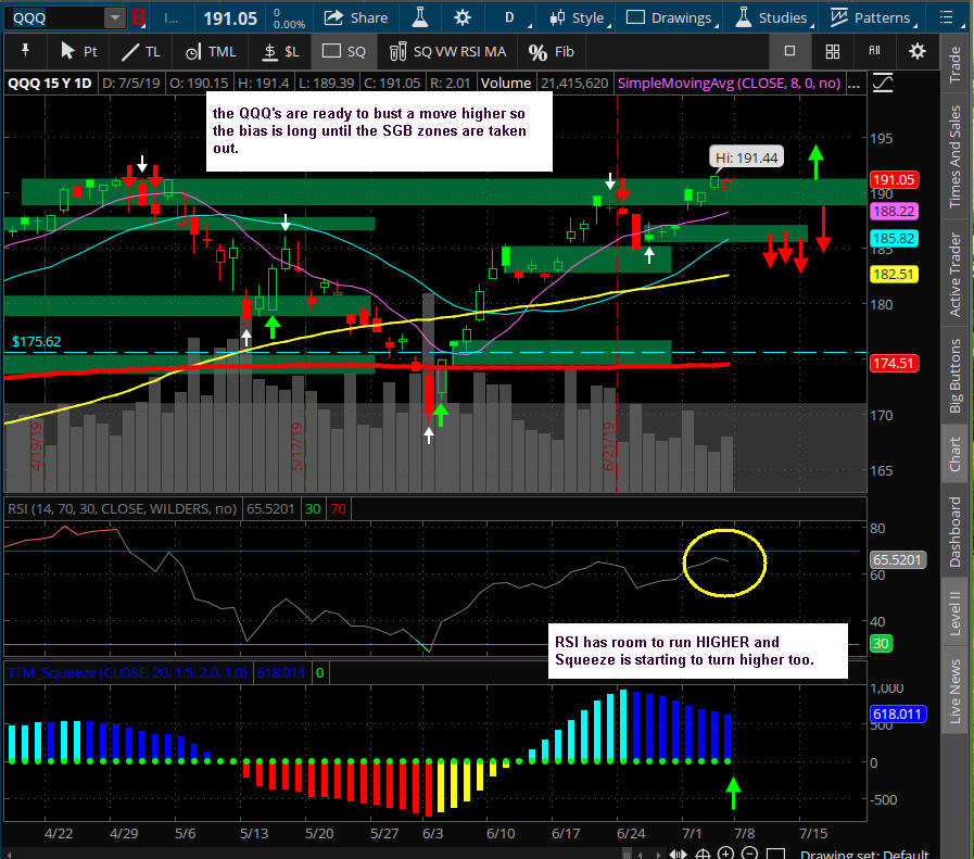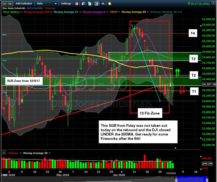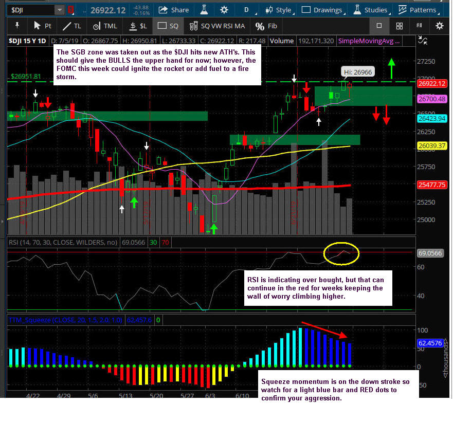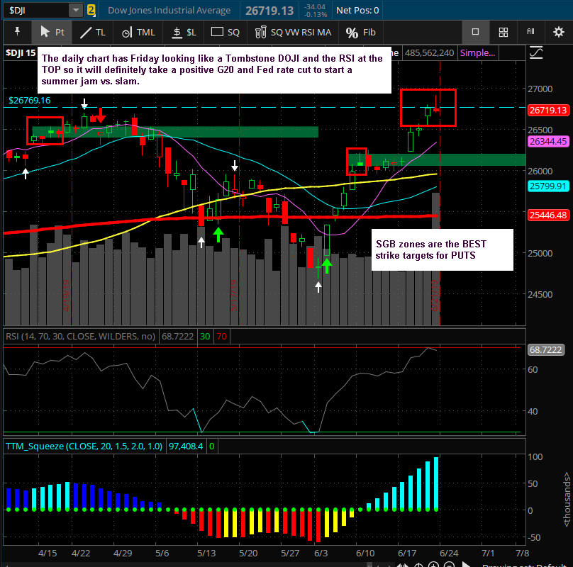 Now that all the indices have take out their SGB zones, markets are going to be skittish with itchy trigger fingers taking profits on any bounces. If you are looking for options trades, be sure to ALWAYS fish for better pricing because the Market Makers will have a lot of implied volatility and slippage priced in.