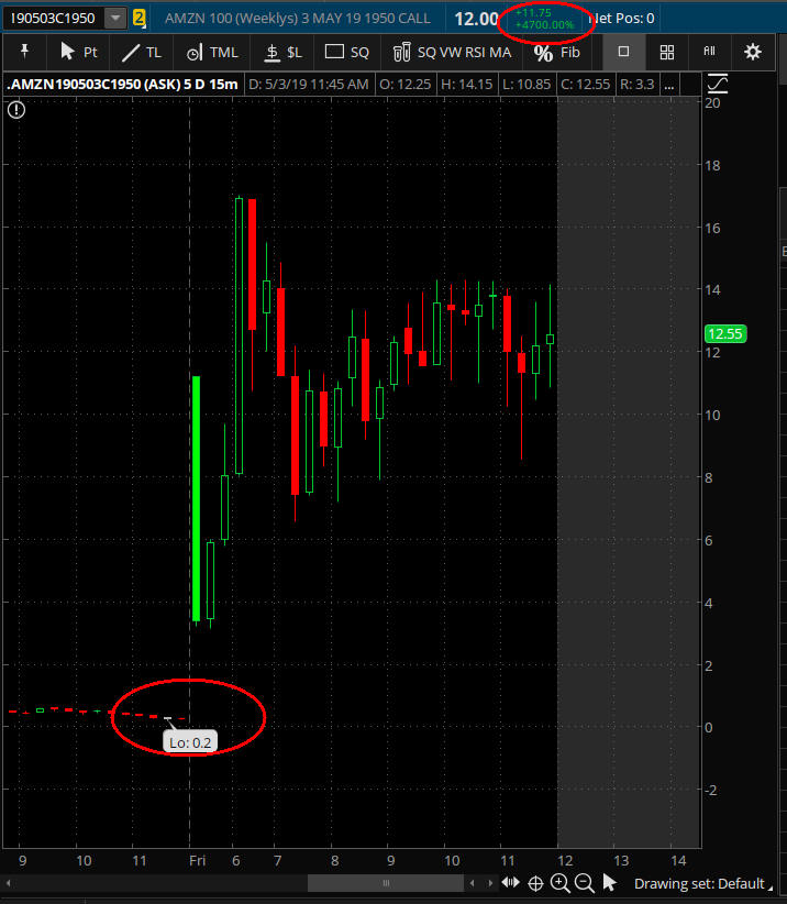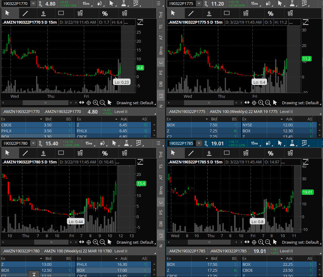 This the Thur/Fri the volatility was off the charts with Trade War news from China, and then tweets from Trump, and FOMC comments by chairman Powell. It was a real knock down drag out fight between the Bulls and the Bears that drove stocks all over the place and crated a Moby Dick winner on the AMZN TGIF PAYDAY! 1815 PUT trade!$!