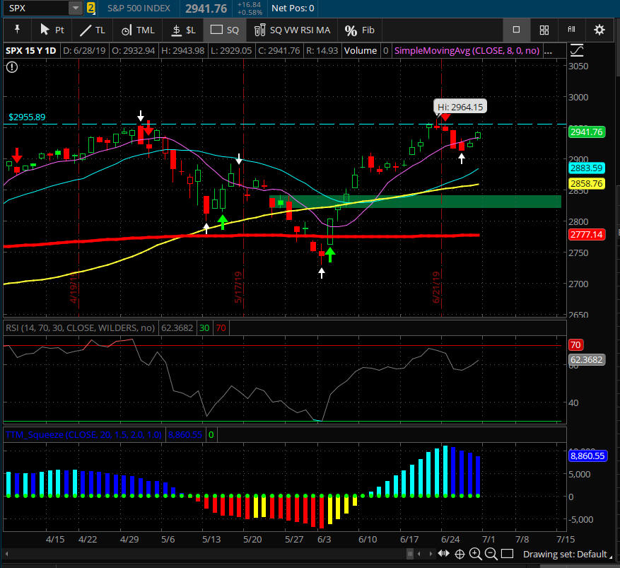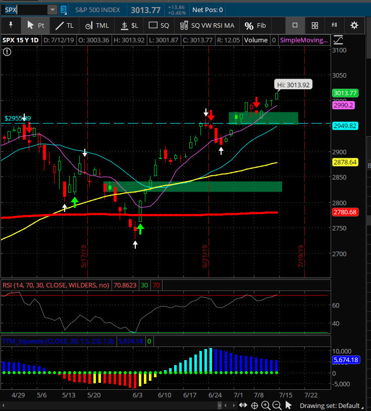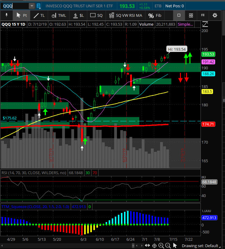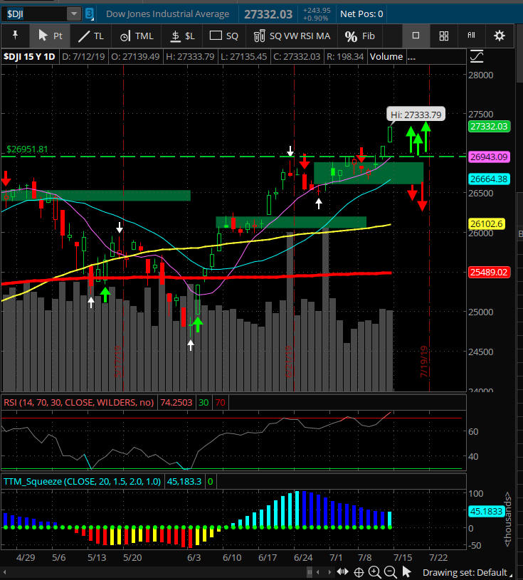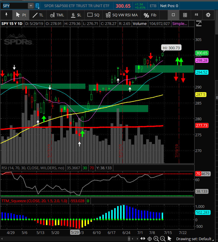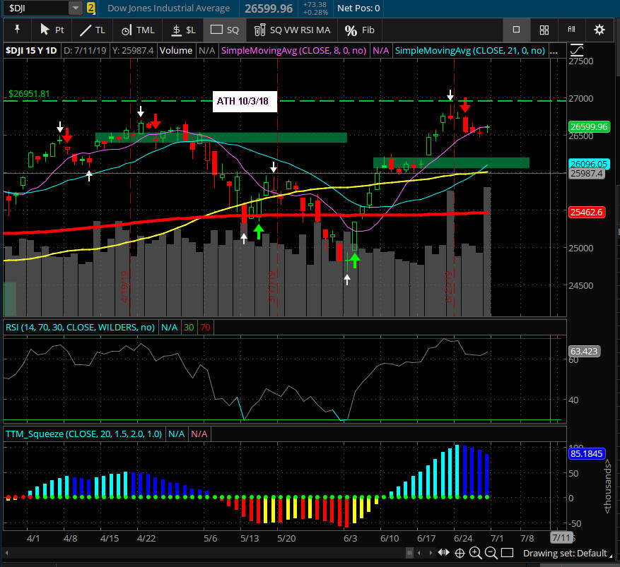 All indices pulled back from historic highs as investors try to decide on their market bias. With the looming FOMC rate decision coming on 7/31/19. Here is a great resource I use to see upcoming news events. https://www.forexfactory.com/calendar.php?day=jul31.2019