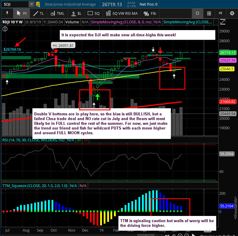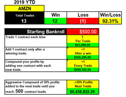 This week is the last one for the month of August and then we start down the final quarter of 2019 and there is sure to be continued volatility. What I am doing from this day forward is buying every TGIF PAYDAY! trade idea to the maximum price of $0.75 for the SPY and $6.00 for AMZN on Thur or Friday morning boom or bust!
