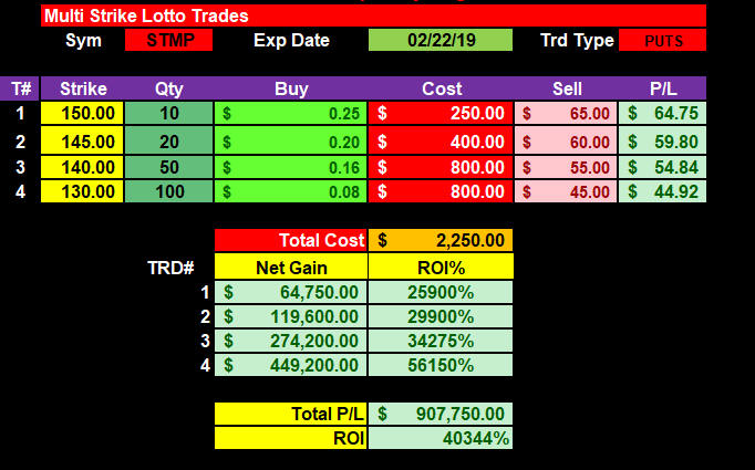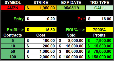 I am currently 90% focused on the TGIF PAYDAY! strategy the rest of the year; and as things progress, I am pretty sure all my subscribers will be too. The nice thing is, once we do compound beyond 1K contract loads, then we will have the capital to load up on multi-strike Lotto Trades and have our MILLION DOLLAR winner in the future on stocks like GOOGL, AMZN, NFLX, CMG etc.