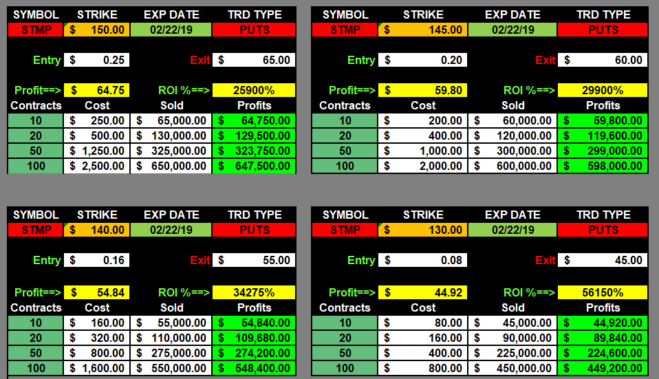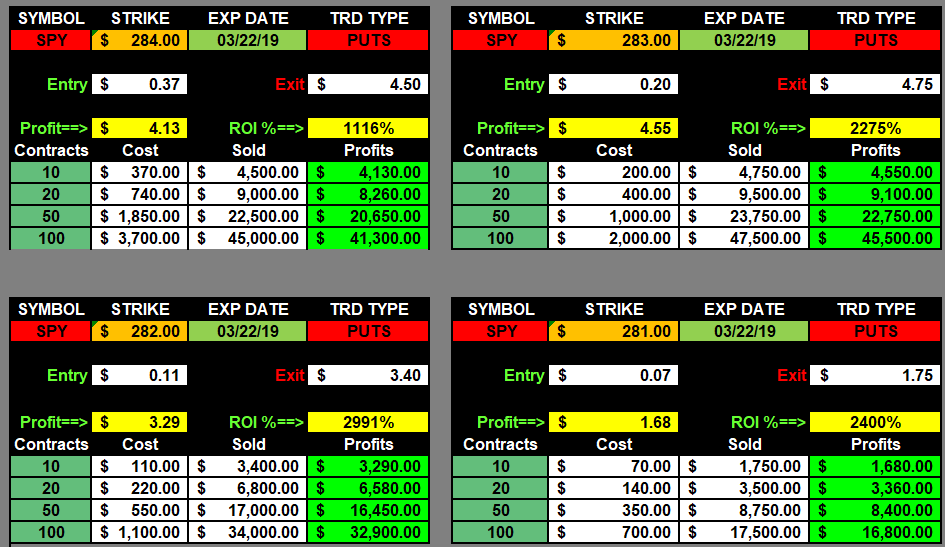 Once you start to compound, then you can even diversify your trades and increase the number of strike prices you buy by picking up OTM contracts on the PUTS side because; as you witnessed this week; a Trump tweet can produce massive moves to the downside and we will make 5-6 Figure profits on Fridays!!!!!