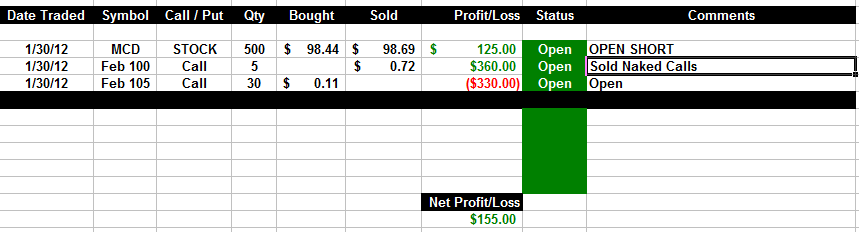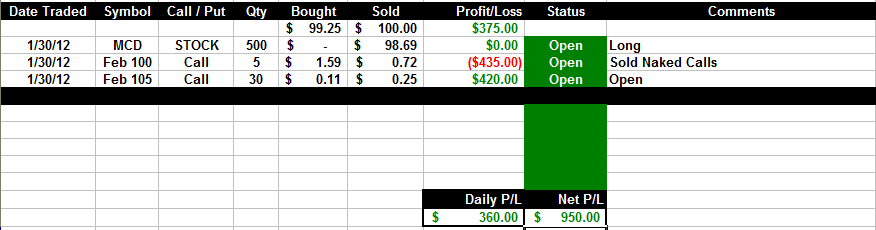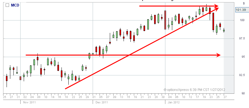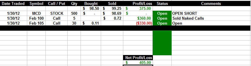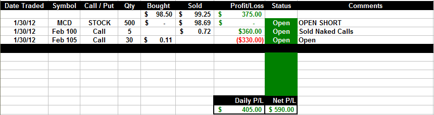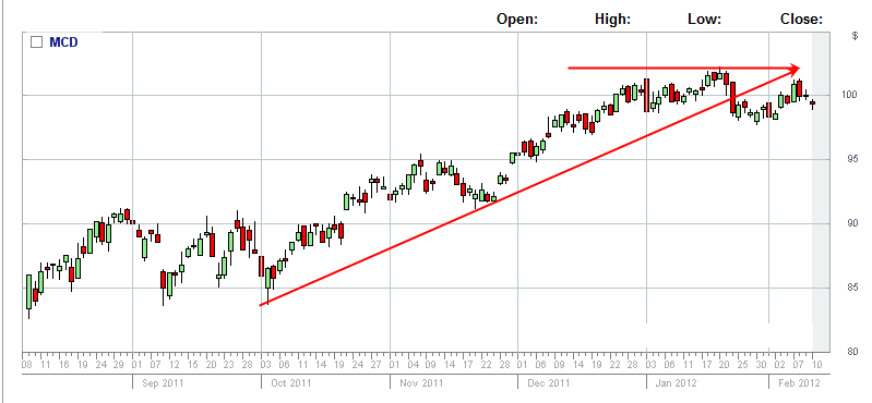 2/10/12 - MCD back under $100 and looking like it's going to head lower next week. We will be there to capture the daily profits!!