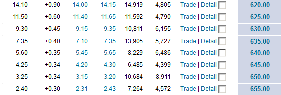 Options volume picked up on the call side and the upside resistance for November is $700.
