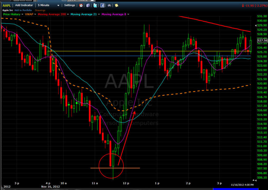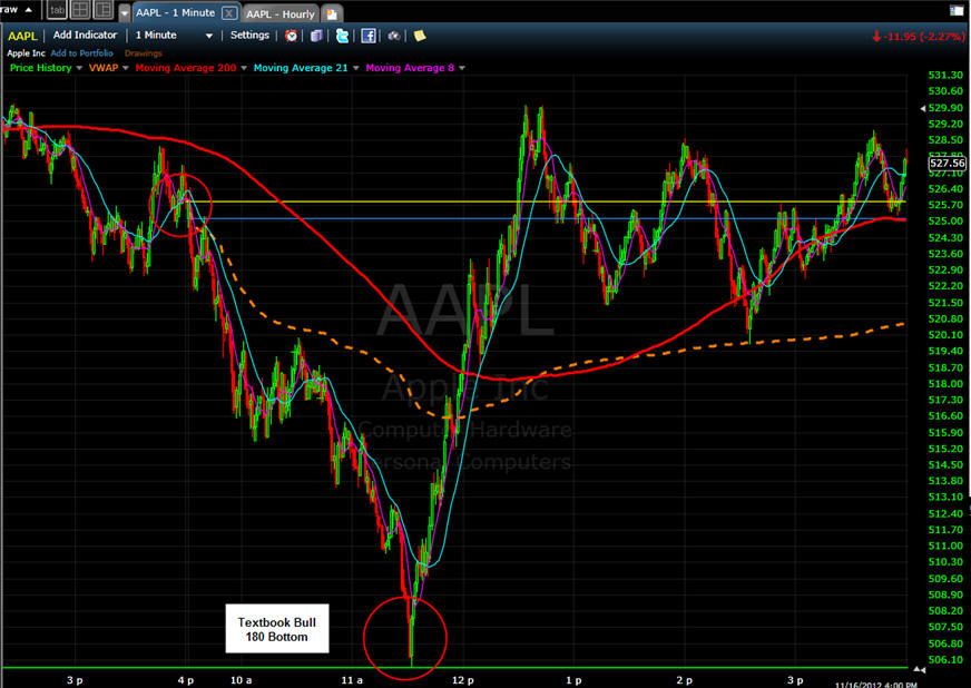 markets and AAPL put in a perfect Bull 180 pattern on the 1 minute chart