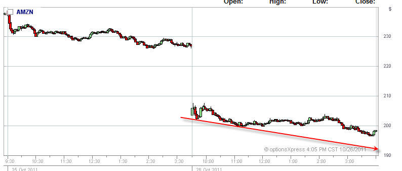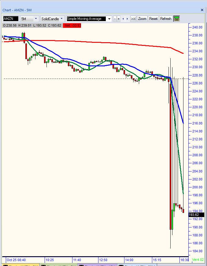 AMZN missed by a huge margin and the stock was whacked hard in post market trading. We are going to have another HUGE WINNER tomorrow!!! They missed so badly that I am expecting a continued gap down tomorrow and more selling. Looking like the first possible stop would be at $180 or hopefully lower$$$.
