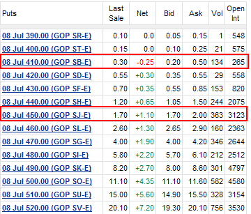 So if you want to really take a swing for the fence then pick up the $410's and hope we get a whopper of a disappointment.