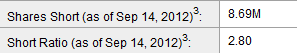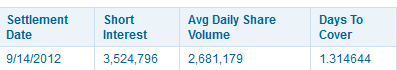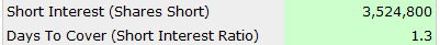 Another clue I use to determine if the stock will make a large move to the upside is the short interest. Short Squeeze shows:
