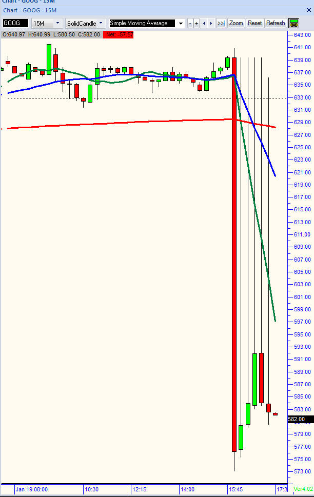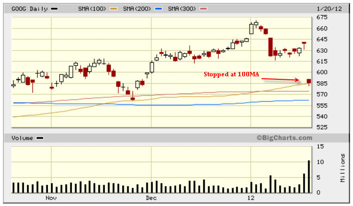 Well GOOG had a massive PAY DAY if you picked the options above the 100 MA on the Weekly but if you had the regular Jan contracts you did not make any money because GOOG pushed higher in after hours and early session today.