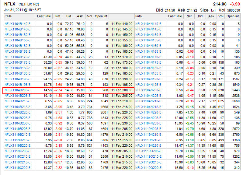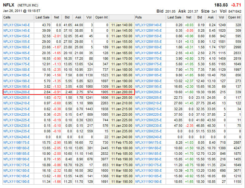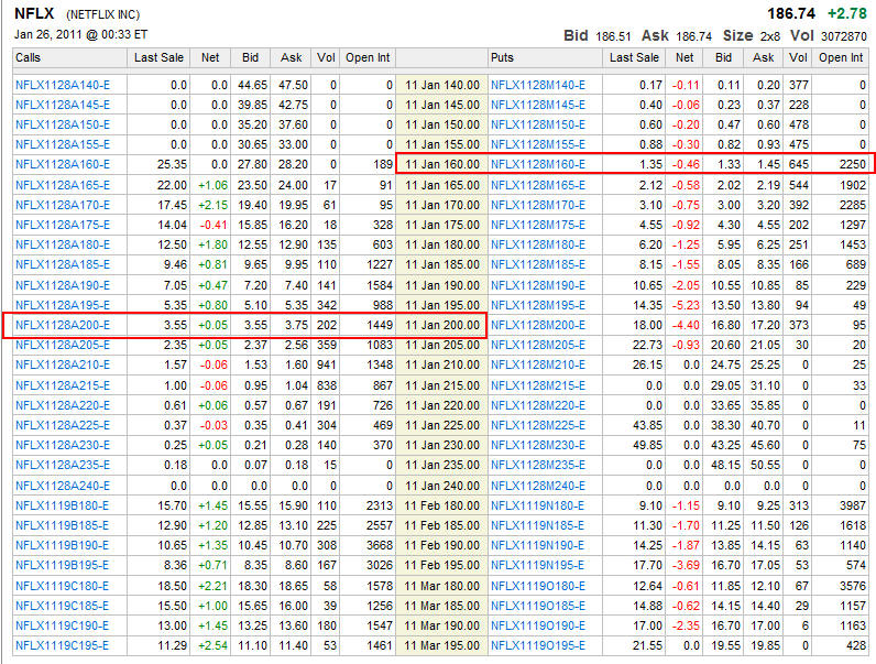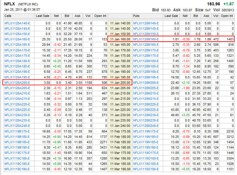1/21/11 - NFLX succumbed to the CEO announcement and appears to be heading down into earnings next week. I will put on a straddle the day before earnings.